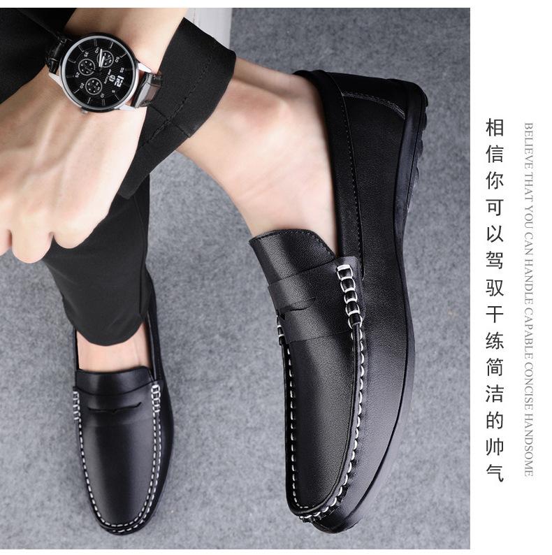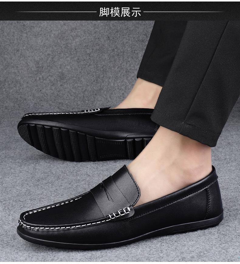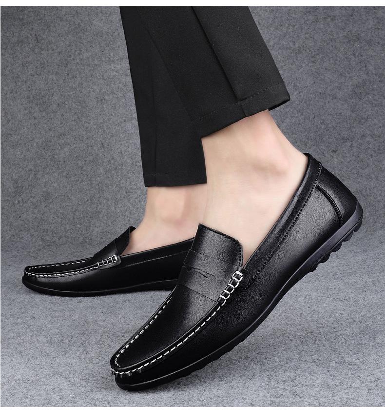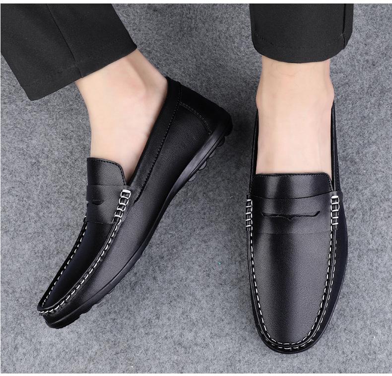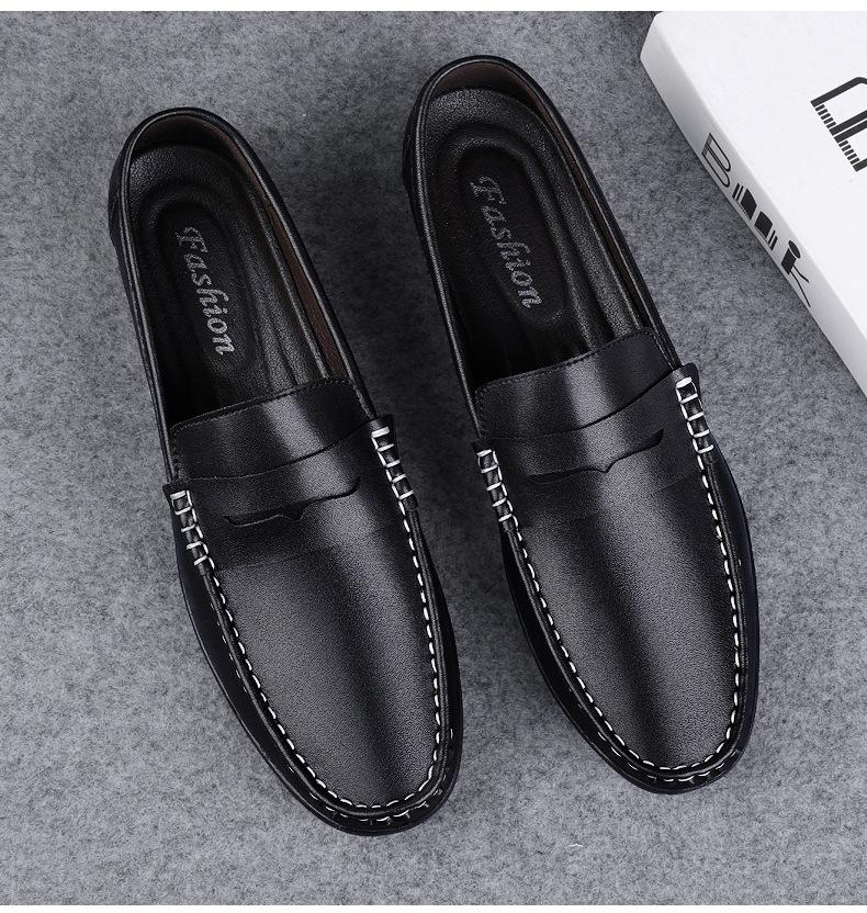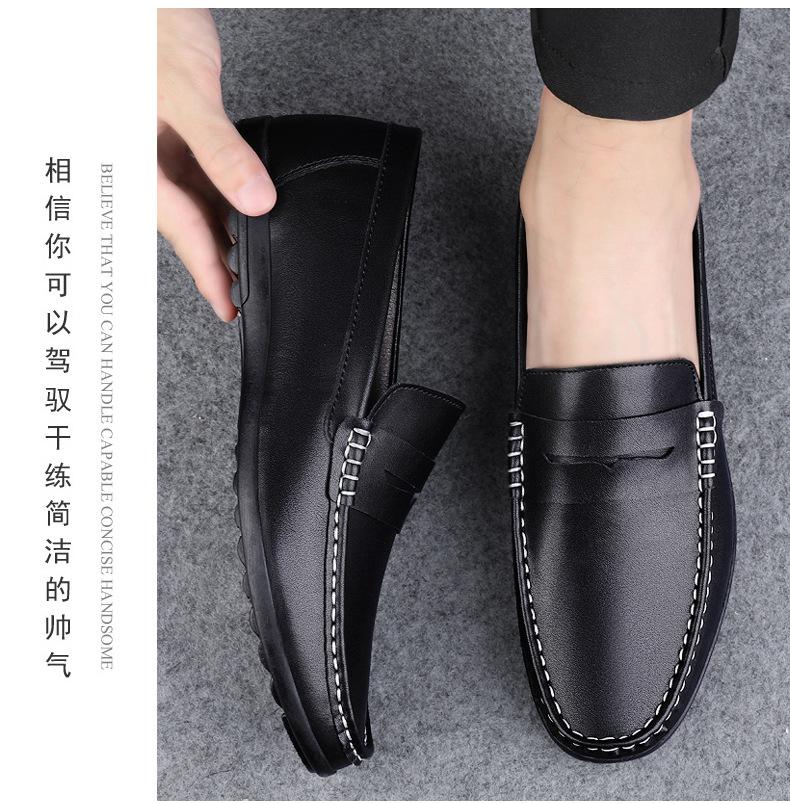 Zapatos casuales de cuero para hombre, nuevos zapatos de primavera, estilo coreano moderno, suela blanda, zapatos de cuero de moda sin cordones de talla grande, transfronterizos