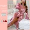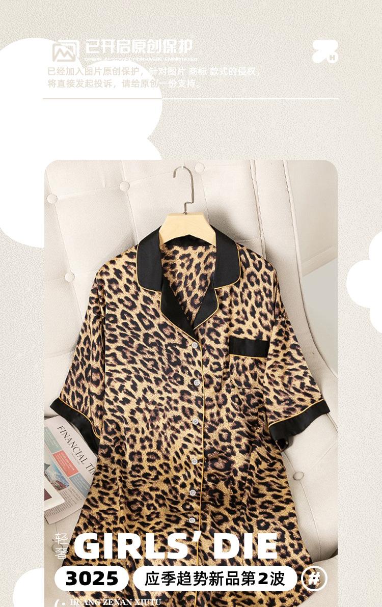 Camisón con estampado de leopardo para mujer, verano nuevo, seda de imitación, sexy, pijama fino, estilo novio, rojo red, camisa larga, falda, venta al por mayor