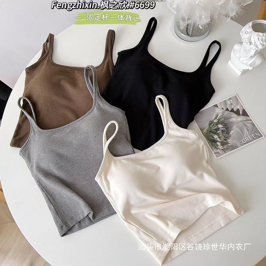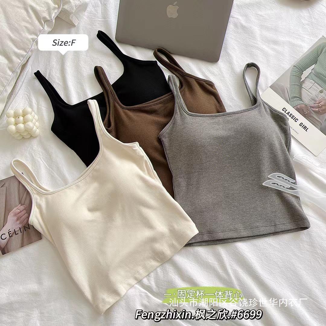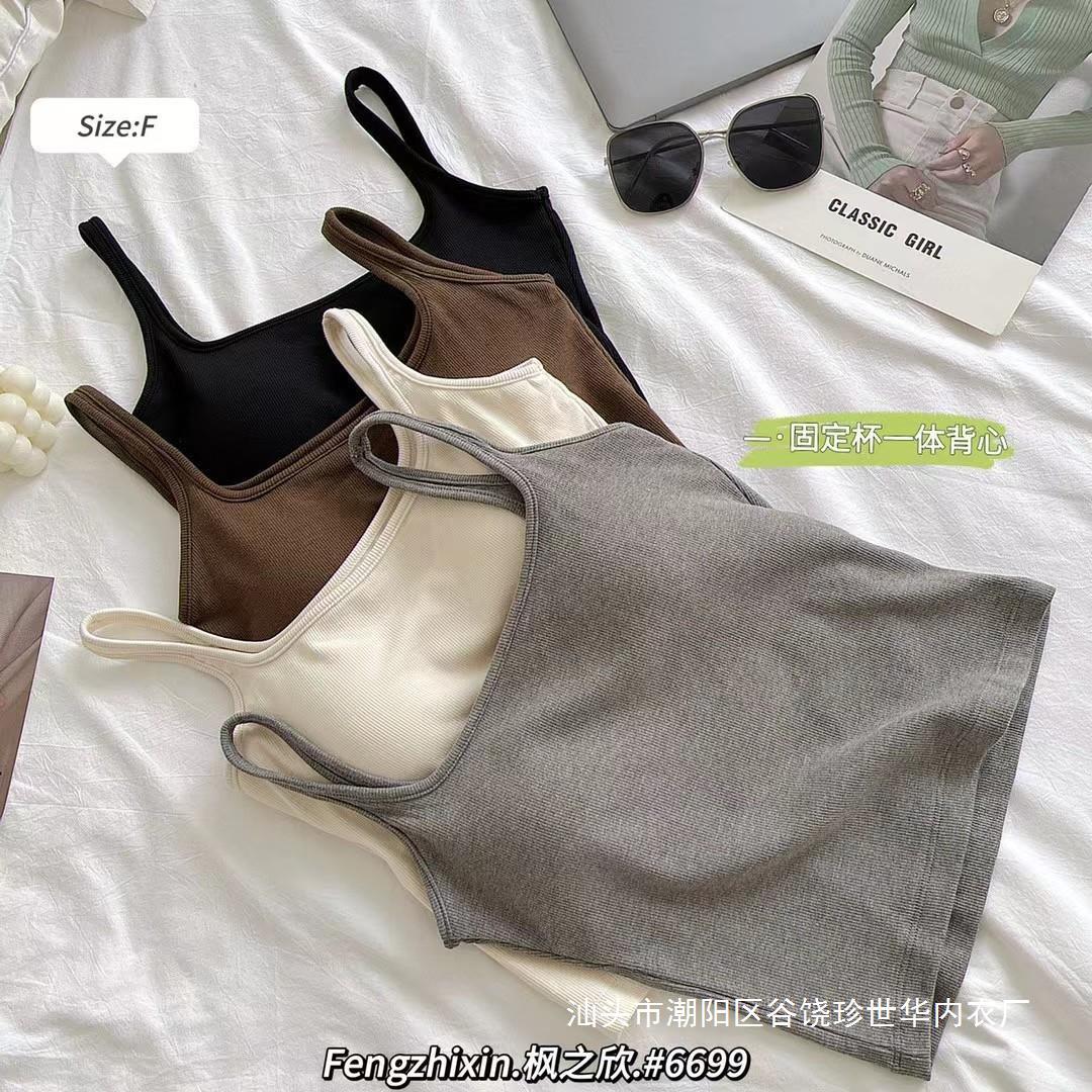 6699 Estilo Coreano Verano Camisola Cuello Cuadrado Moda Combinable Una Pieza Copa Ropa Interior para Mujer sin Varillas