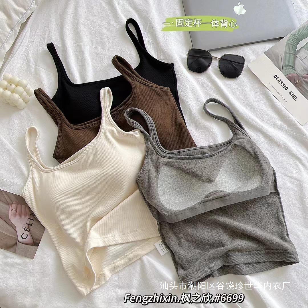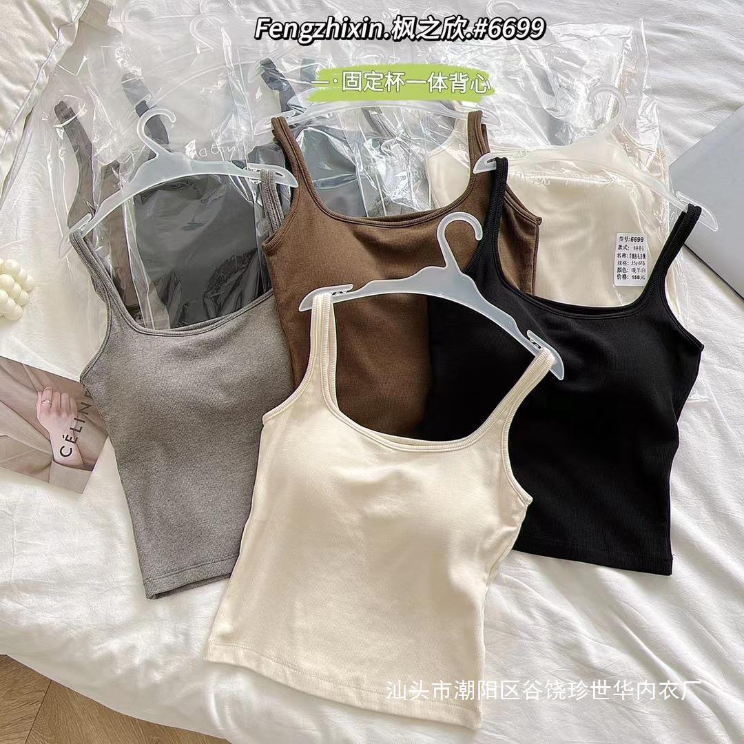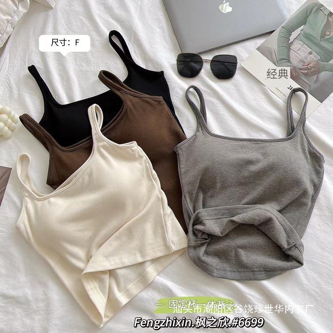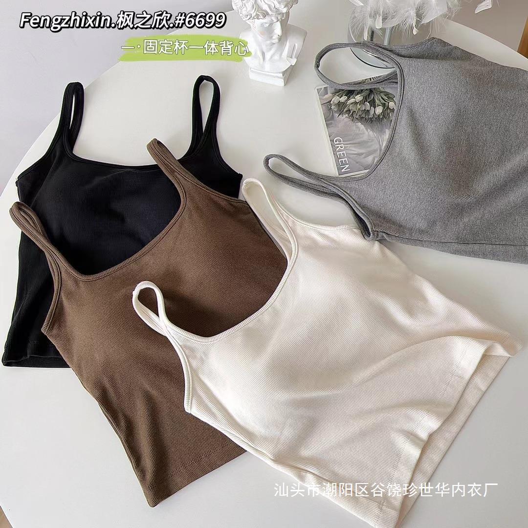 6699 Estilo Coreano Verano Camisola Cuello Cuadrado Moda Combinable Una Pieza Copa Ropa Interior para Mujer sin Varillas
