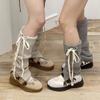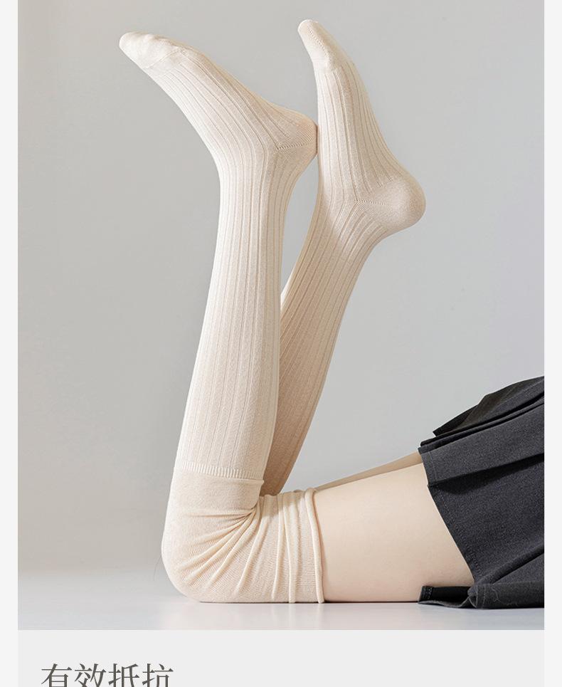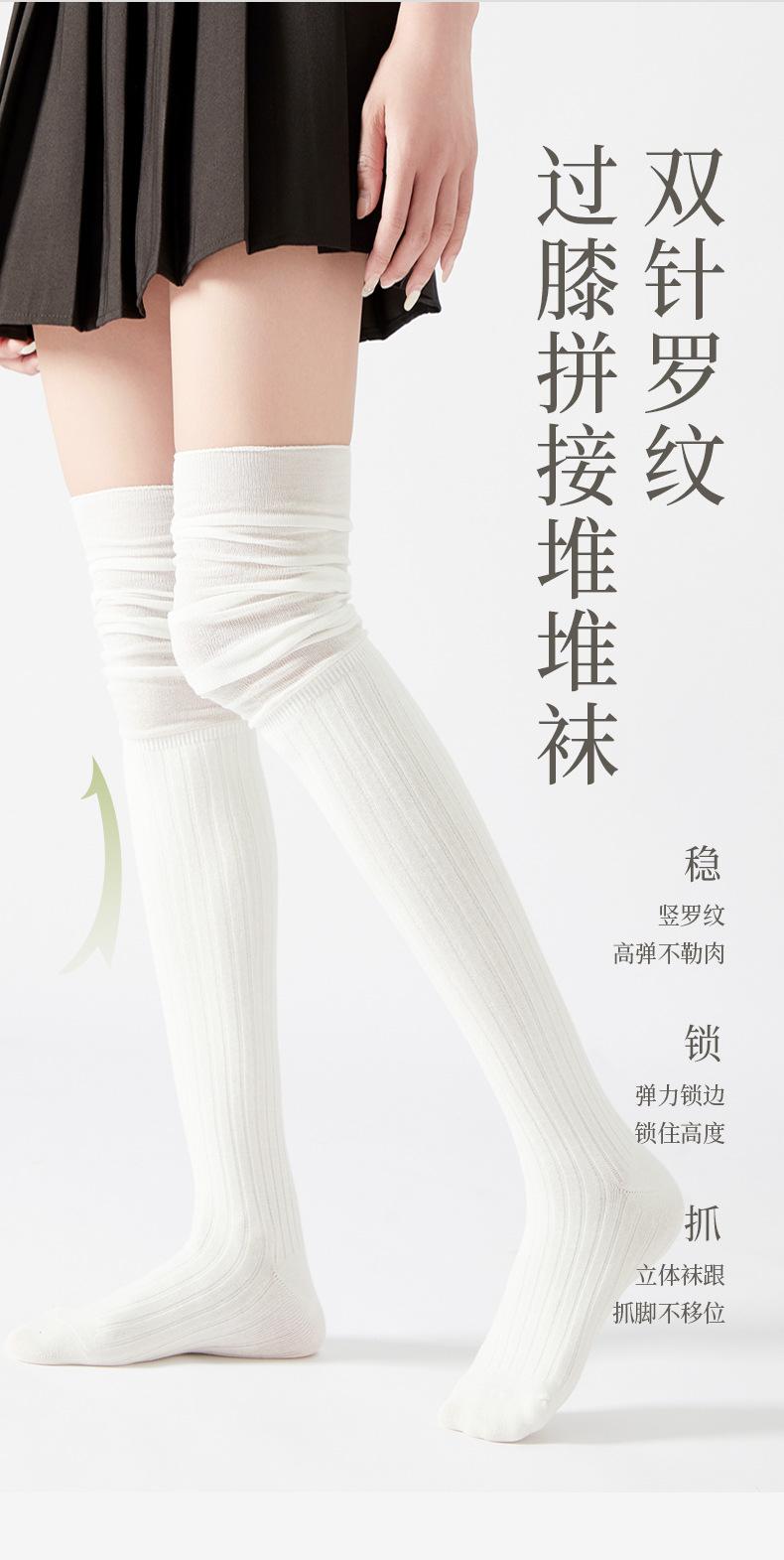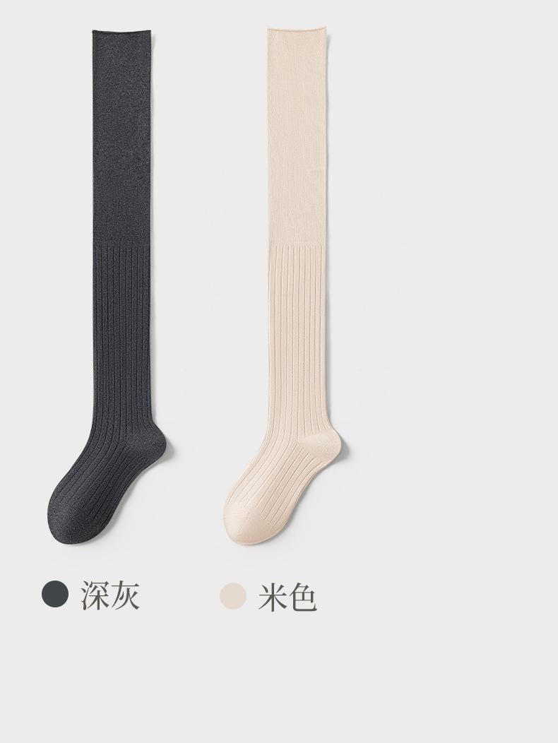 Calcetines Zhuji, medias color blanco crema, calcetines altos color caqui para mujer, calcetines beige hasta el muslo, calcetines con costuras por encima de la rodilla, calcetines apilados