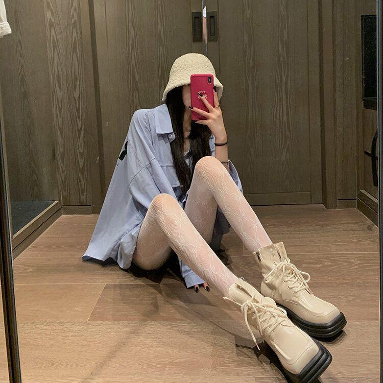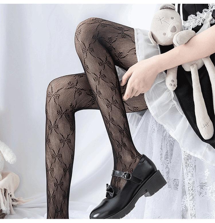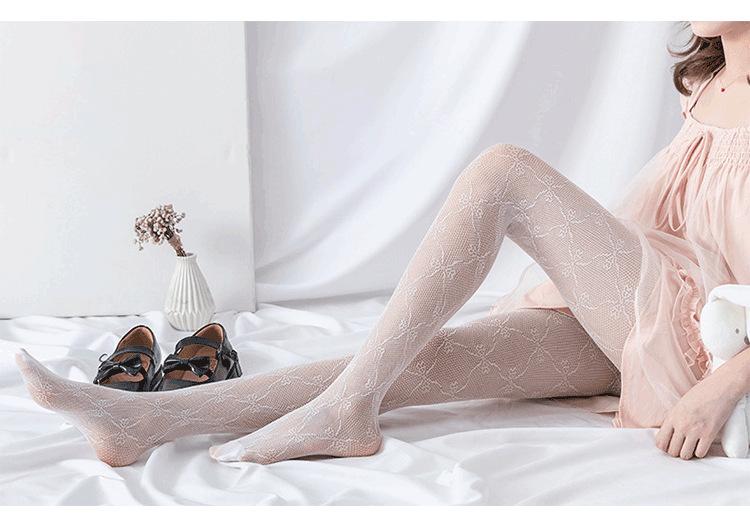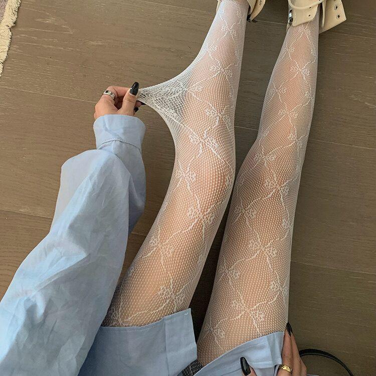 Medias de Tenis de Encaje Sexy Blancas Pantimedias Lazo Femenino Medias de Seda Huecas Dulce Estilo Japonés Ropa Exterior Calcetines Delgados para Piernas