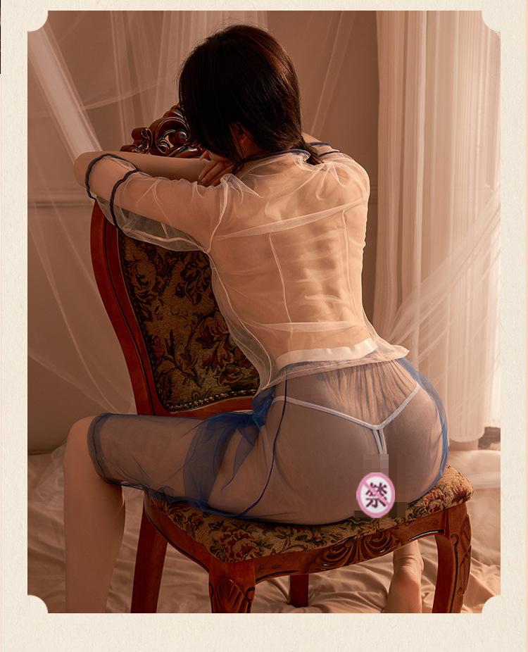 Lencería sexy, ropa nacional de moda para mujer, uniforme cheongsam estampado transparente, ropa de estudiante tentadora estilo republicano, camisón sexy