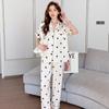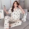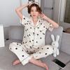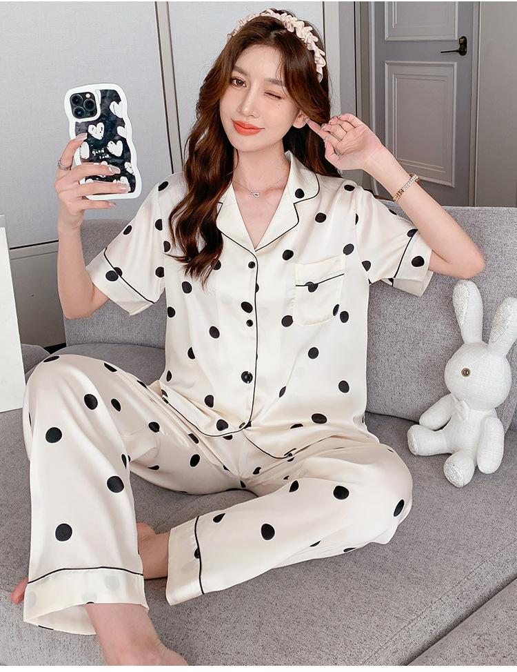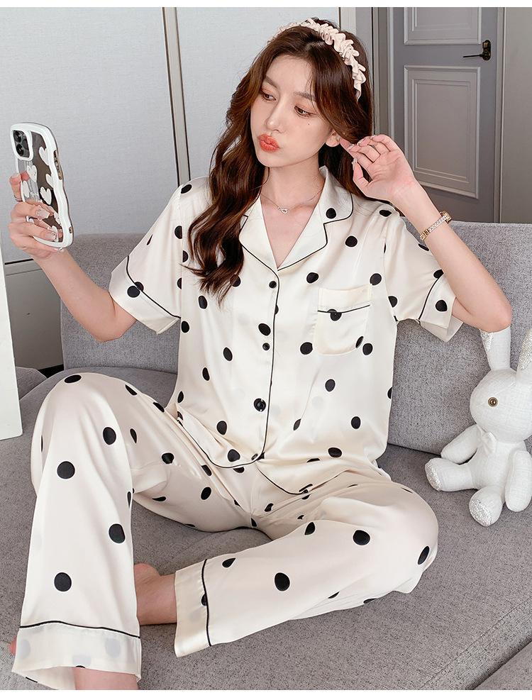 Pijama de Seda de Hielo para Mujer Verano Manga Corta Pantalón Conjunto de Dos Piezas Nuevo Lunares Dibujos Animados Ropa de Casa para Mujer 2892