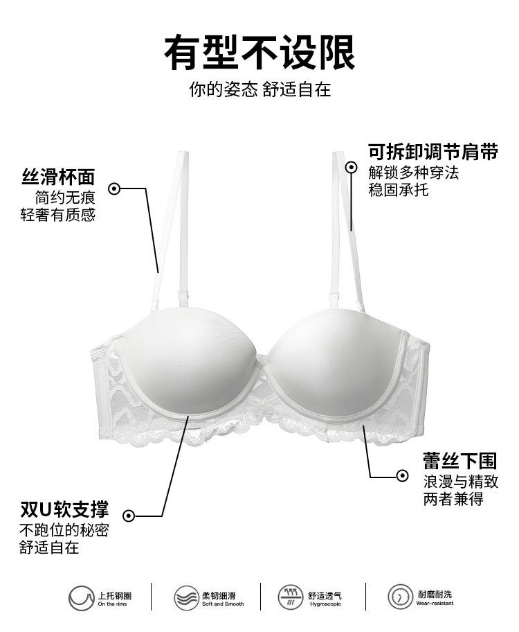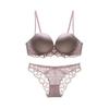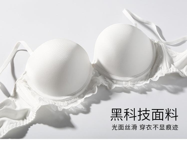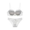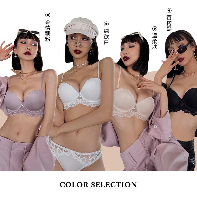 Sujetador Sexy Francés Fino Suave con Aro de Acero U Grande Brillante Espalda Hermosa Encaje Íntimo para Mujer Pecho Pequeño Push-Up Set