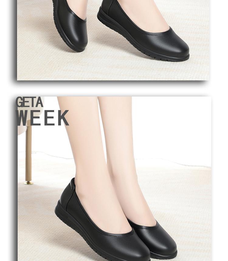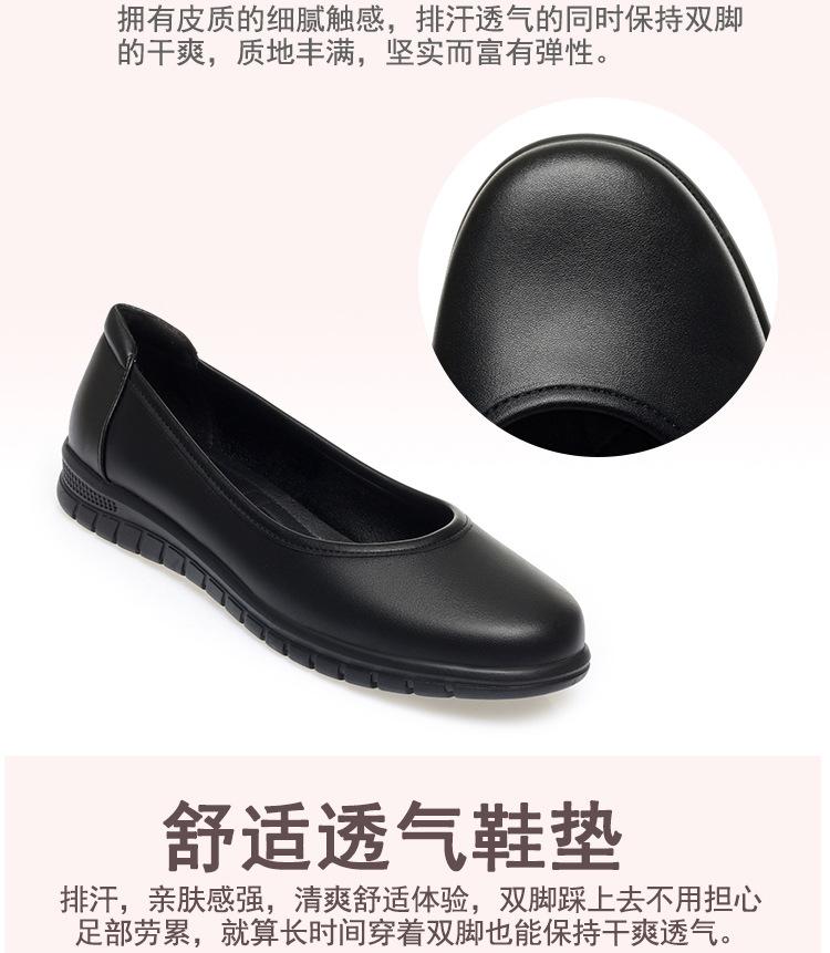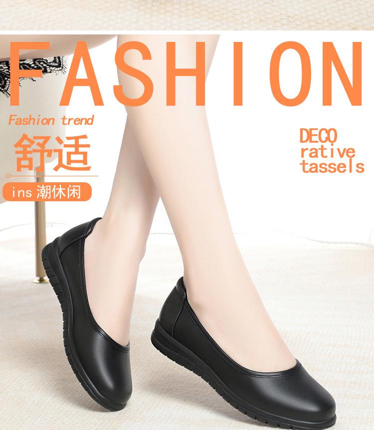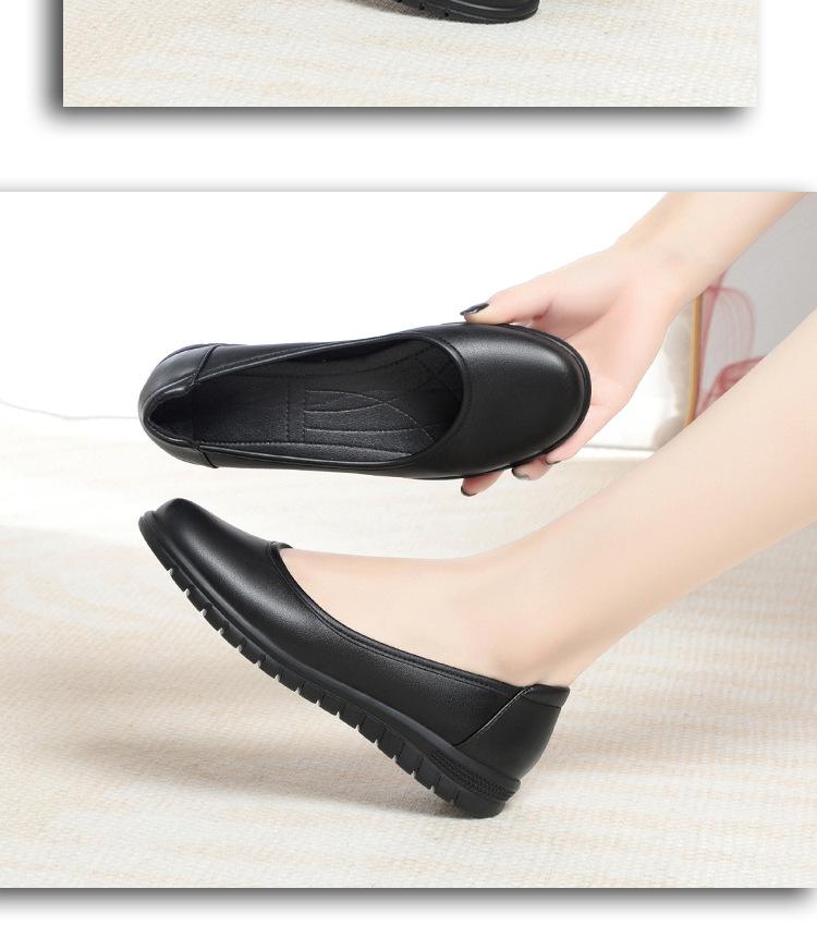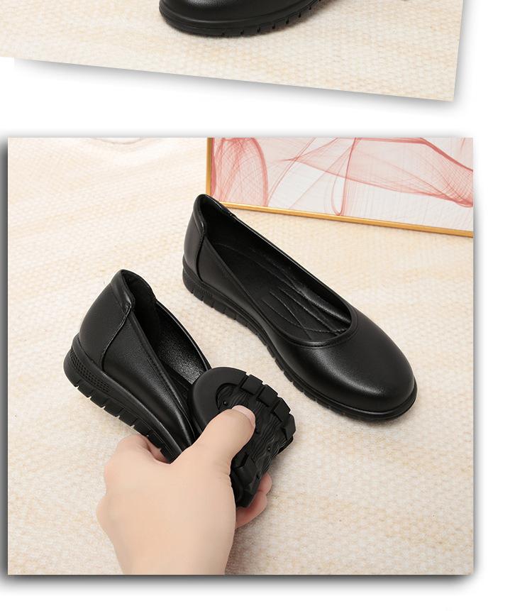 Zapatos de mamá punta redonda negros zapatos de una sola capa transpirables cuero suave suela blanda zapatos planos de mujer mediana edad primavera y otoño nuevos zapatos de trabajo