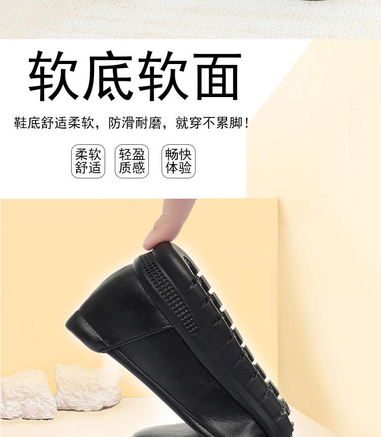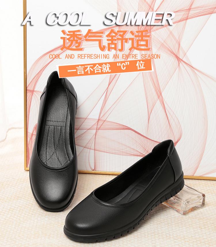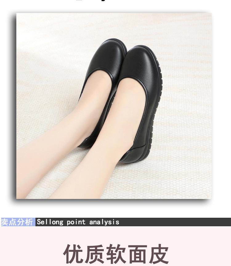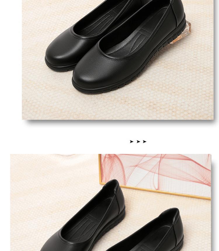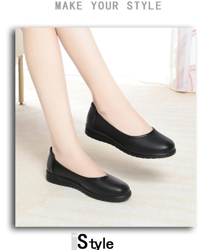 Zapatos de mamá punta redonda negros zapatos de una sola capa transpirables cuero suave suela blanda zapatos planos de mujer mediana edad primavera y otoño nuevos zapatos de trabajo