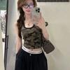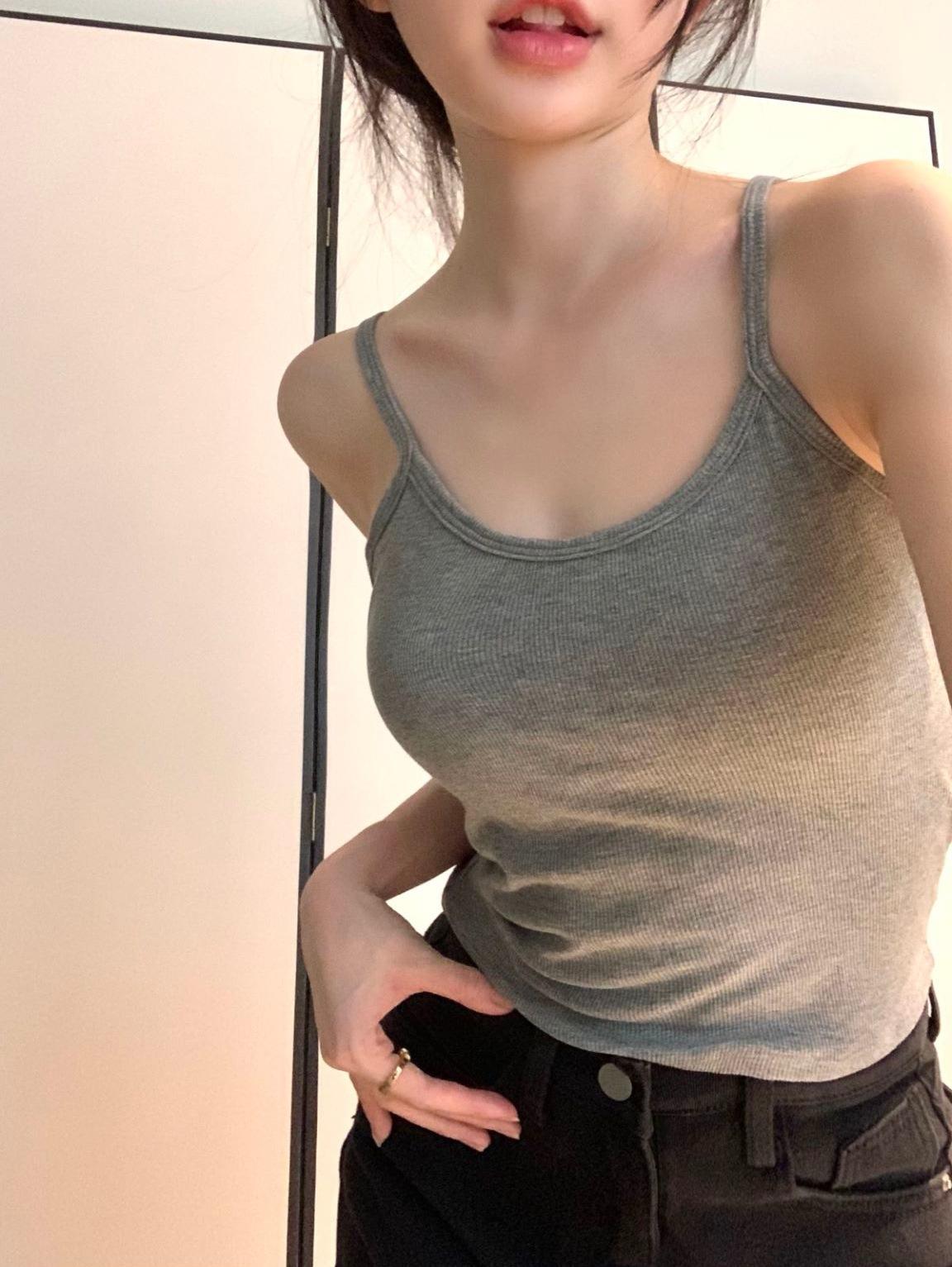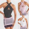 Camisola de algodón y látex con almohadilla para el pecho para mujer, estilo Spice Girls, sexy, de verano, ajustada, con copa fija corta, con espalda descubierta.
