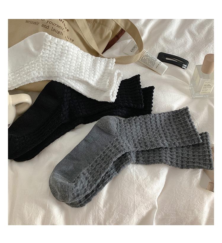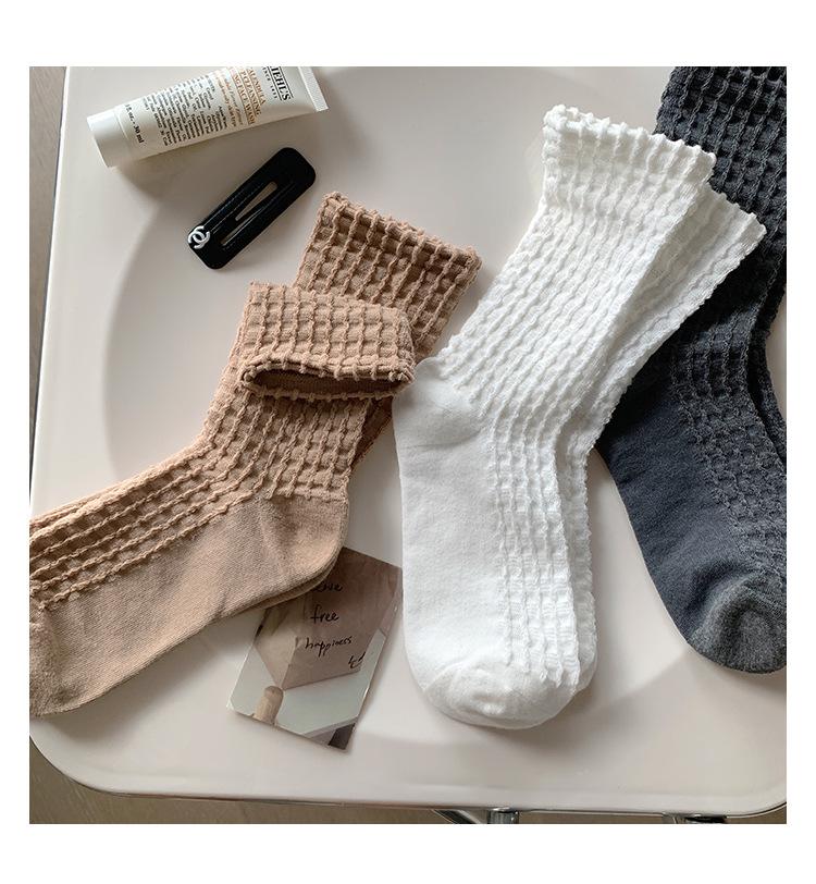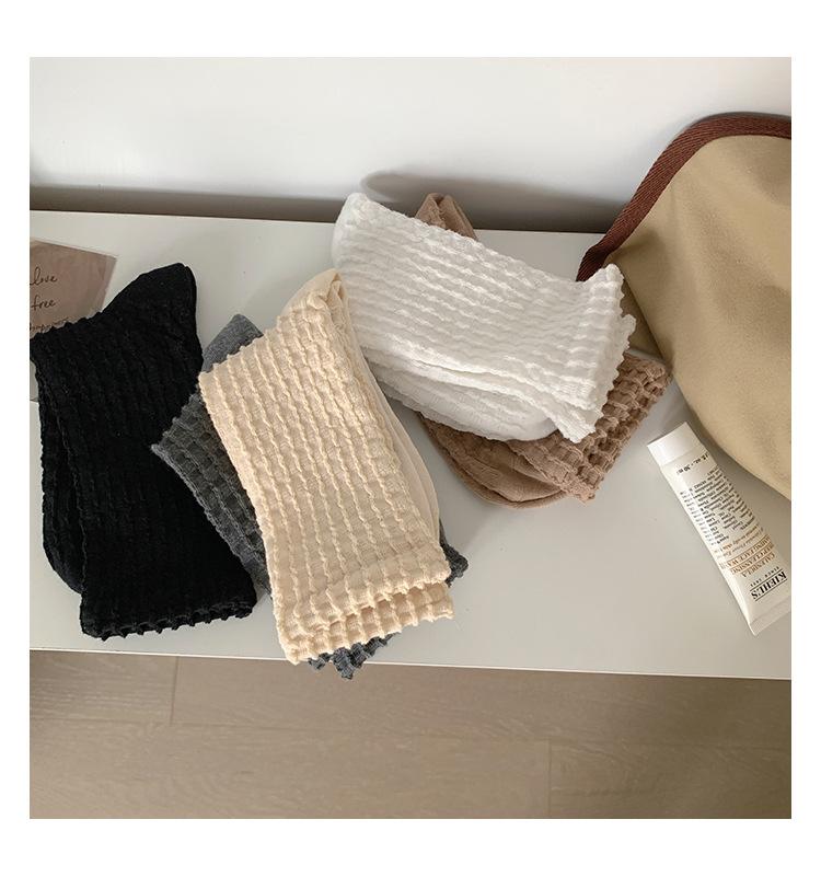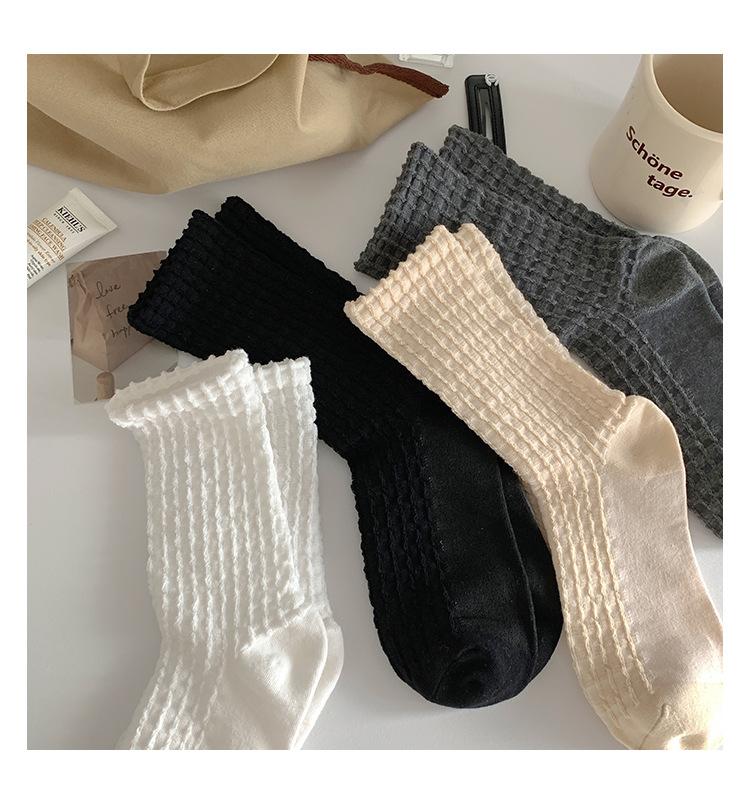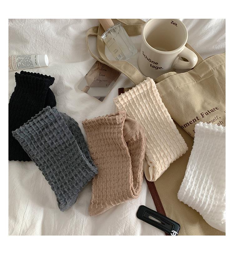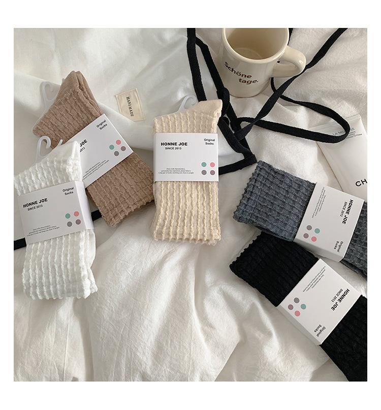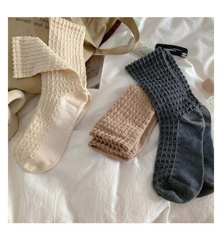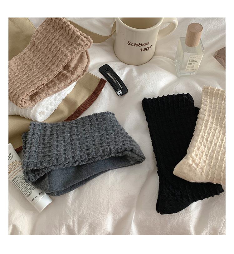 Calcetines de color puro para mujer, calcetines hasta media pantorrilla, moda de primavera y otoño, medias de algodón japonesas, calcetines simples de estilo coreano retro para todo tipo de combinaciones.