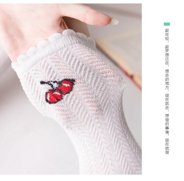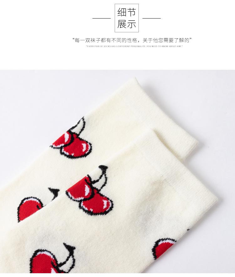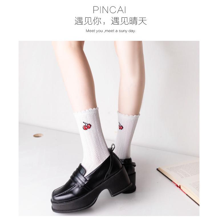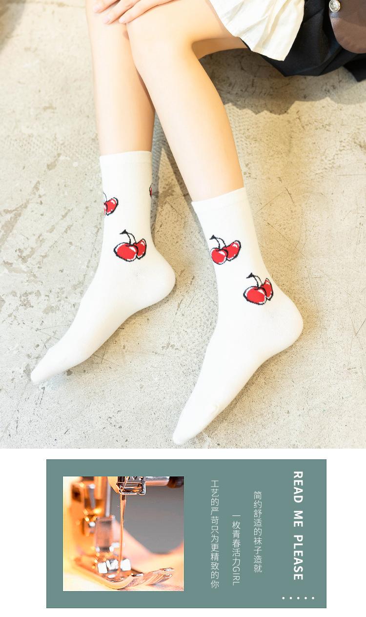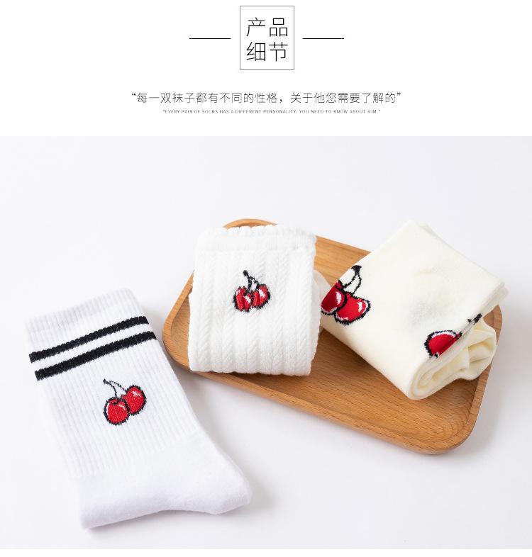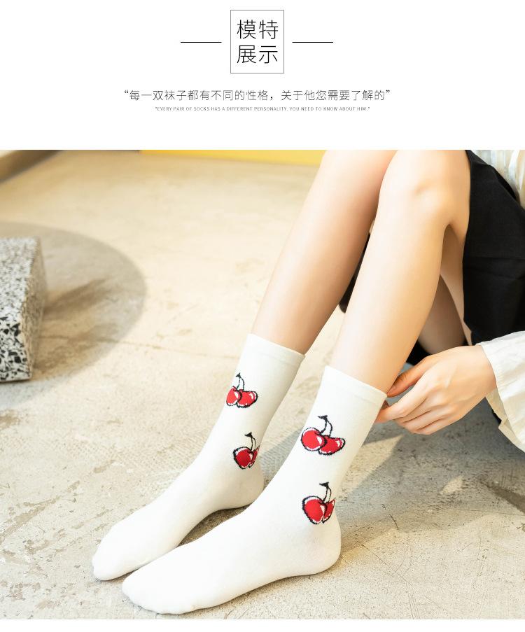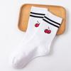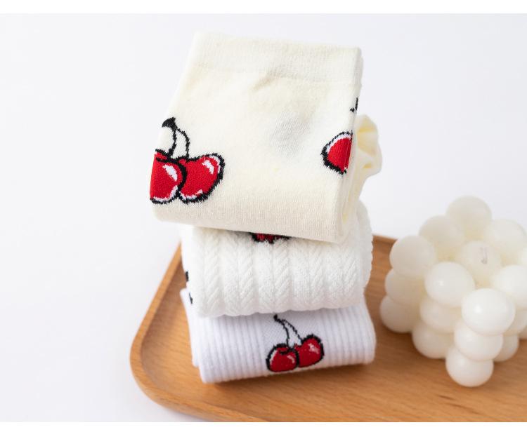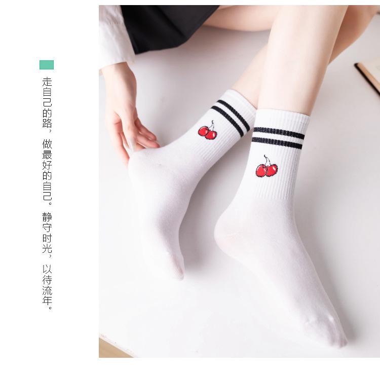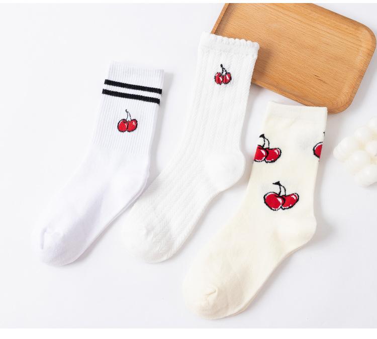 Calcetines de mujer de moda, de longitud media, con bonitos dibujos japoneses de cerezas, de algodón, estilo académico, para otoño e invierno, prendas de vestir exteriores, medias de moda.