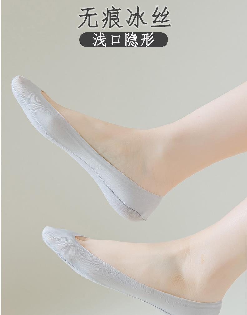 Calcetines de Barco para Mujer Primavera y Verano Seda de Hielo Boca Baja Sin Costuras Calcetines Invisibles para Mujer Silicona Antideslizante Fondo de Algodón Calcetines que no se Caen para Mujer Venta al por Mayor