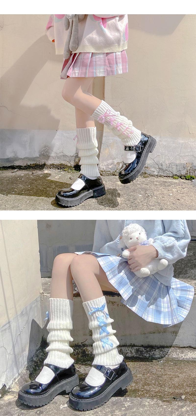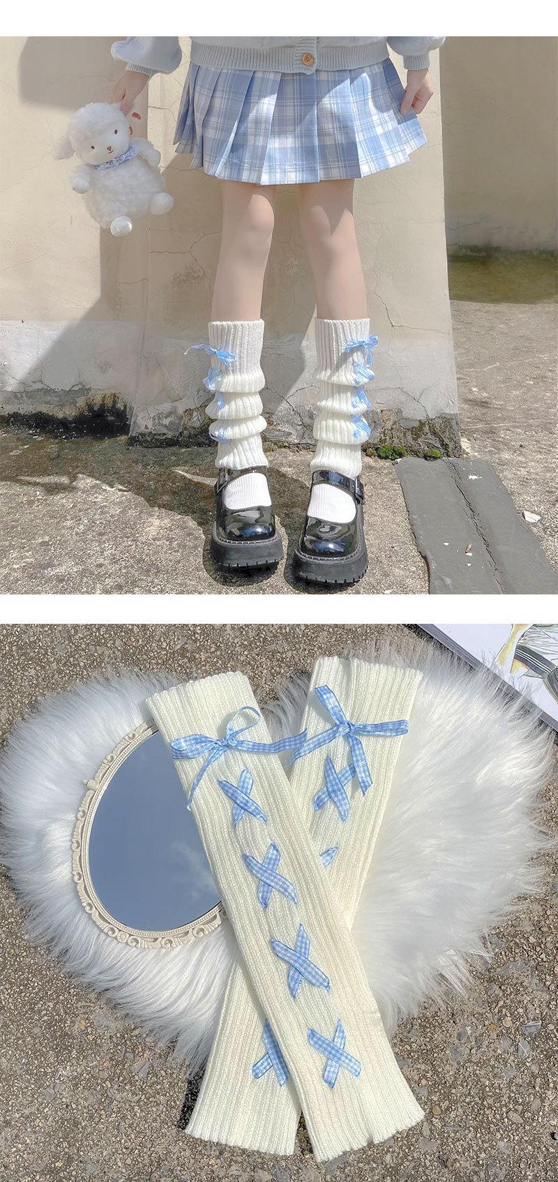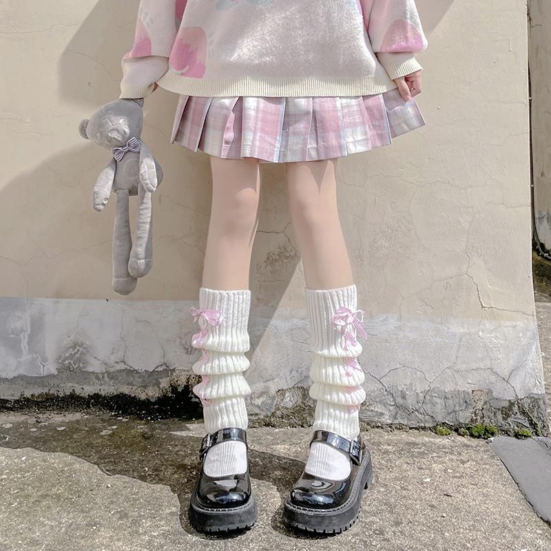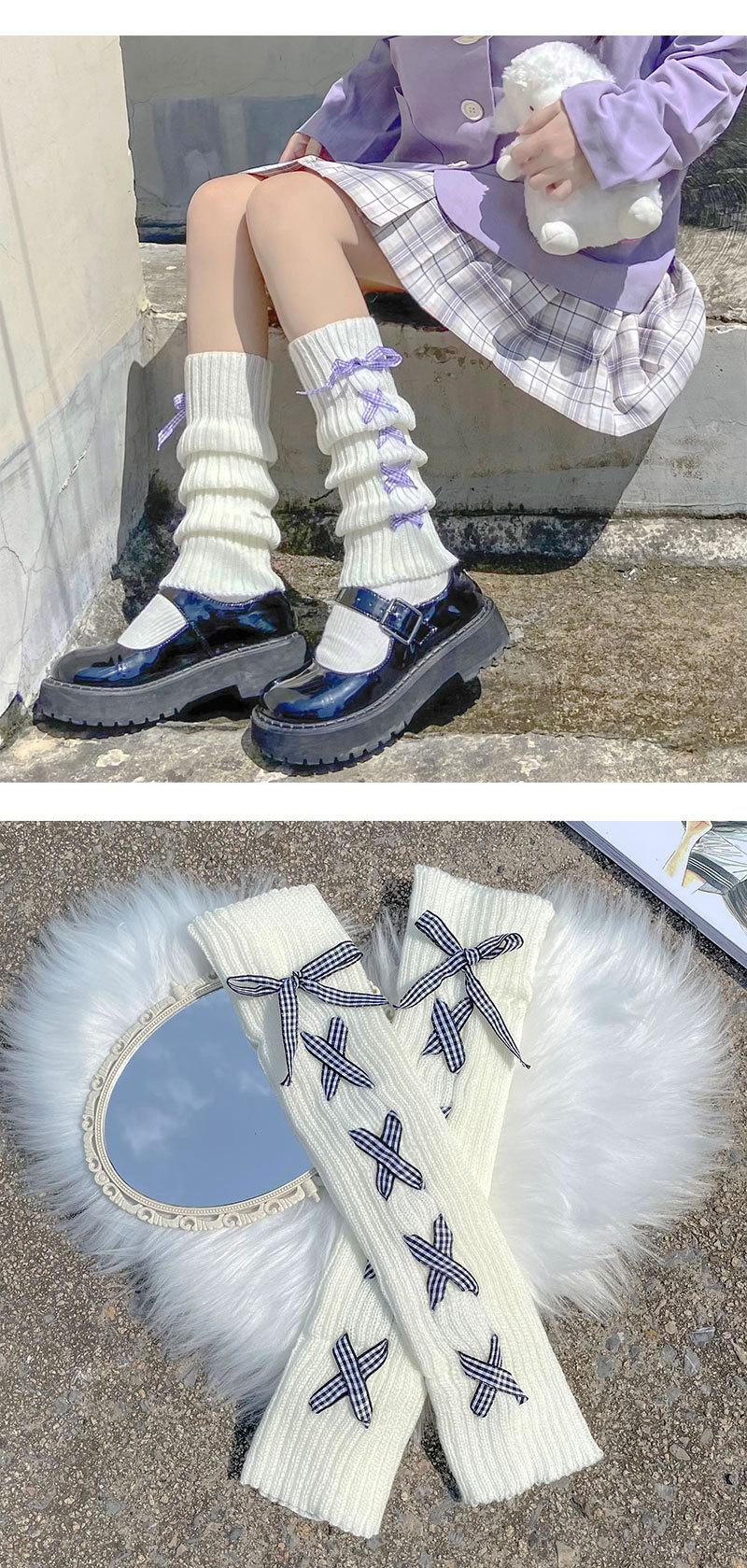 Calcetines Jk Lindos de Estilo Japonés con Lazos Cruzados Calentadores de Pierna Cálidos para Otoño e Invierno Calcetines de Tubo Largo Calcetines Holgados Lolita para Mujer Invierno