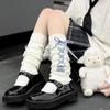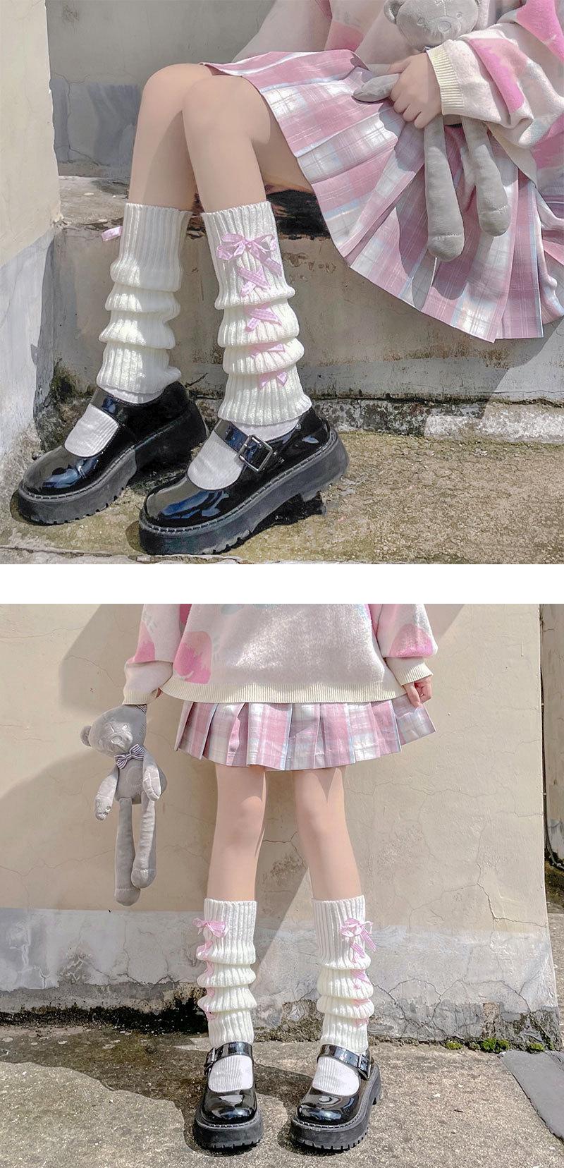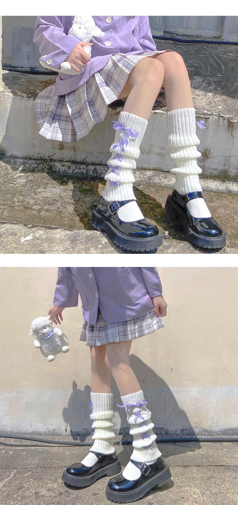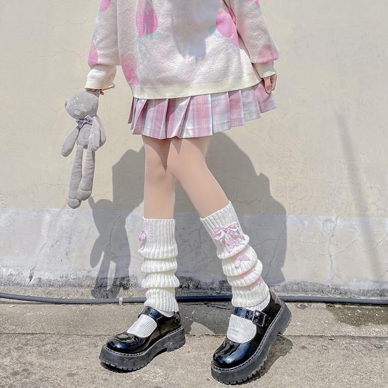 Calcetines Jk Lindos de Estilo Japonés con Lazos Cruzados Calentadores de Pierna Cálidos para Otoño e Invierno Calcetines de Tubo Largo Calcetines Holgados Lolita para Mujer Invierno