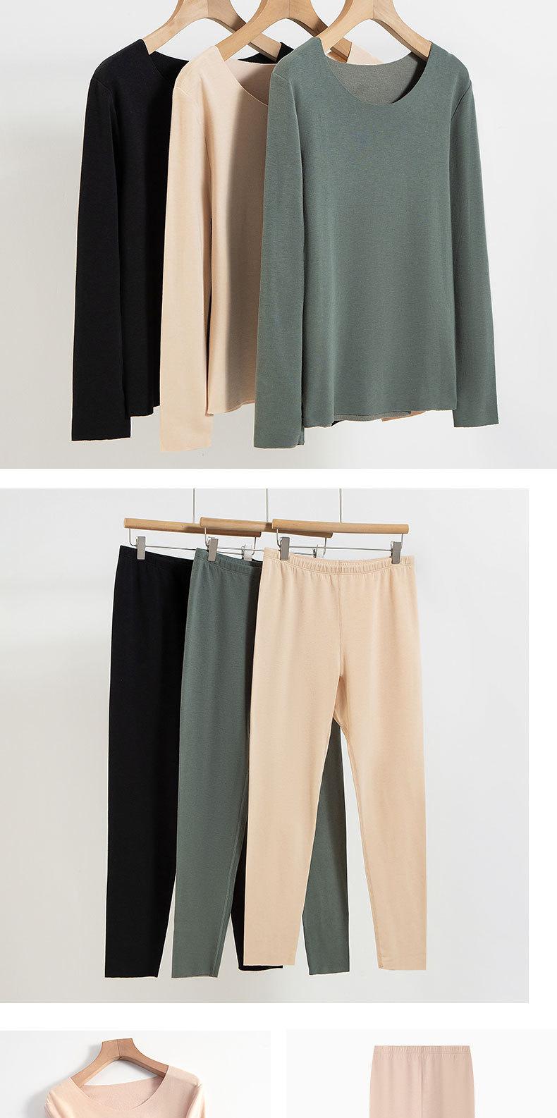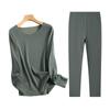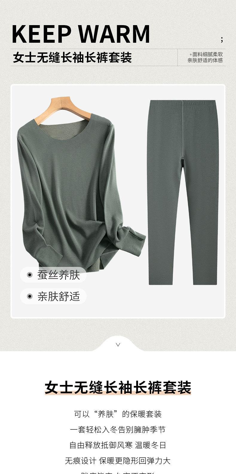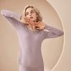 Nuevo conjunto de ropa interior térmica de seda cepillada con cuello redondo y manga larga sin costuras para mujer, agradable para la piel, ajustado, transpirable y de dos piezas