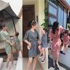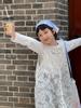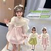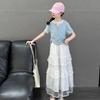 Vestido largo de malla de manga corta para niñas europeas y americanas, falda para niñas medianas y grandes, vestido de princesa de una pieza con borde cruzado, nuevo
