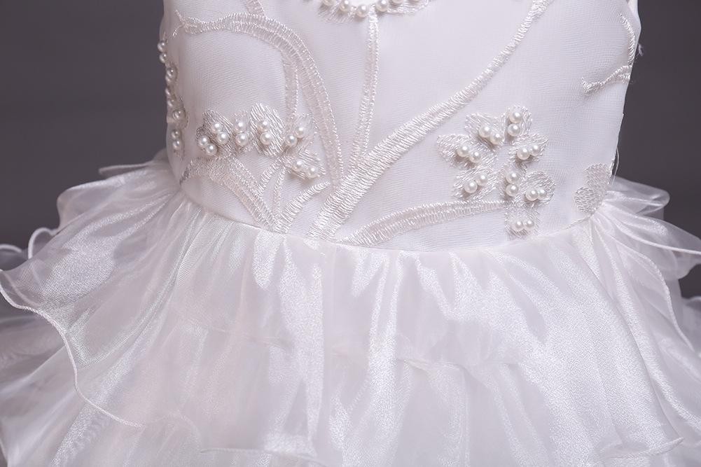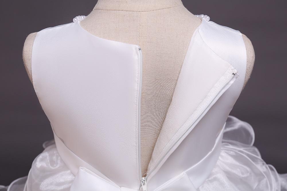 Vestido de princesa largo hasta el suelo para niñas europeas y americanas, con vuelo, para niñas medianas y grandes, vestido de novia blanco sin mangas para niñas de flores