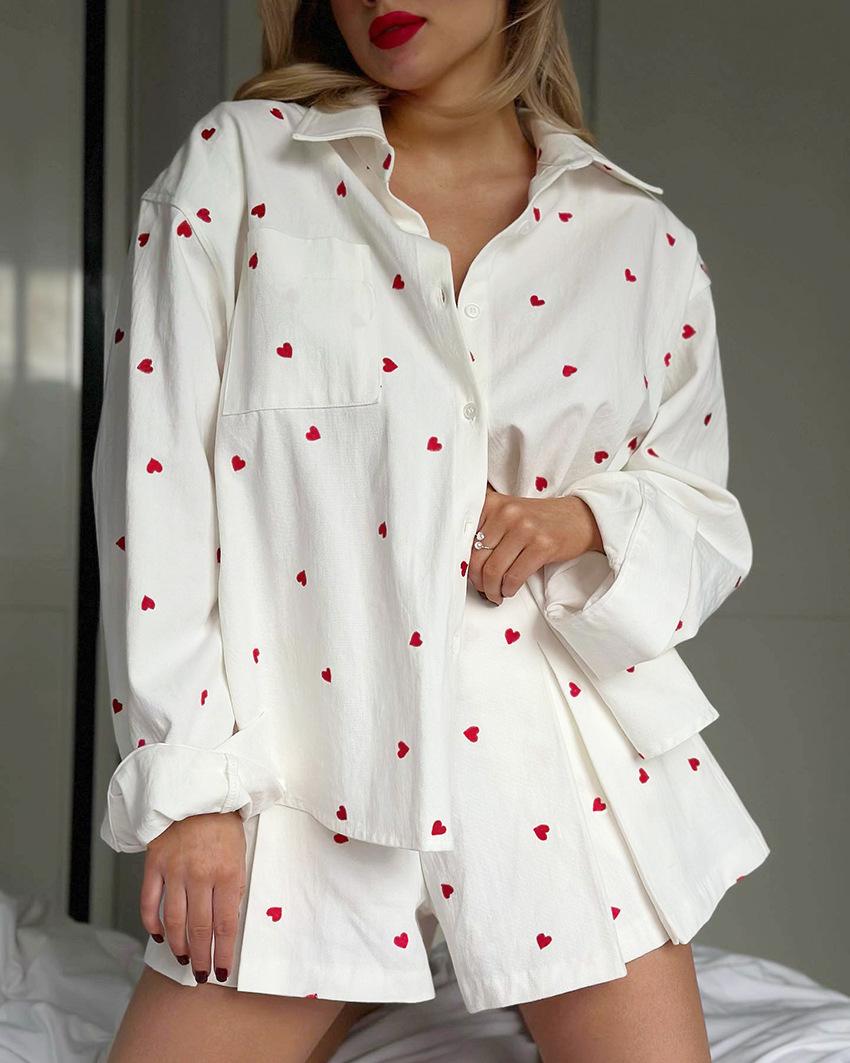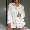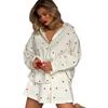 Pijamas de verano de manga larga holgados, cómodos y transpirables con estampado de amor para mujer, ropa de hogar transfronteriza al por mayor, estilo europeo y americano 2024