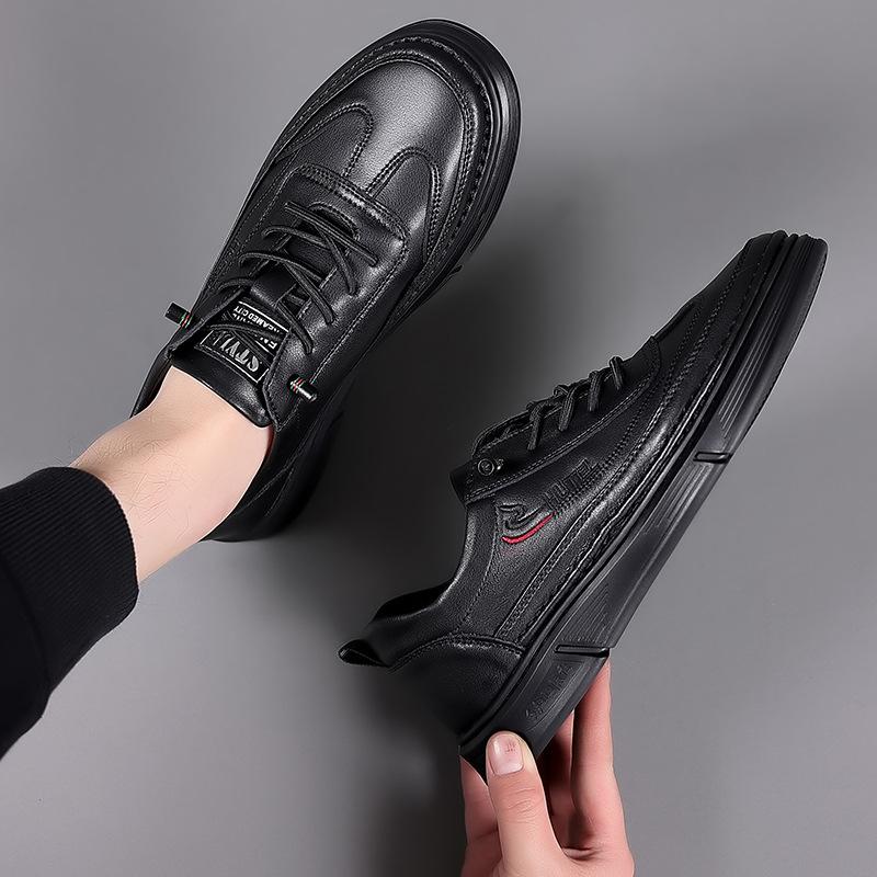 Zapatos para hombre, nueva moda primavera 2024, zapatos casuales combinables, de cuero genuino, suela suave, transpirables, estilo coreano, zapatos deportivos de cuero para hombre.