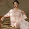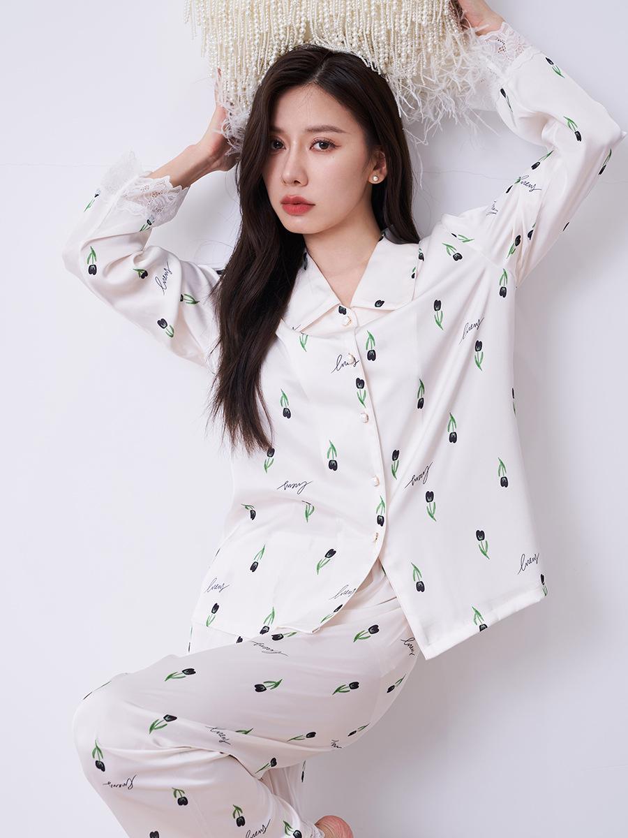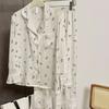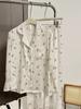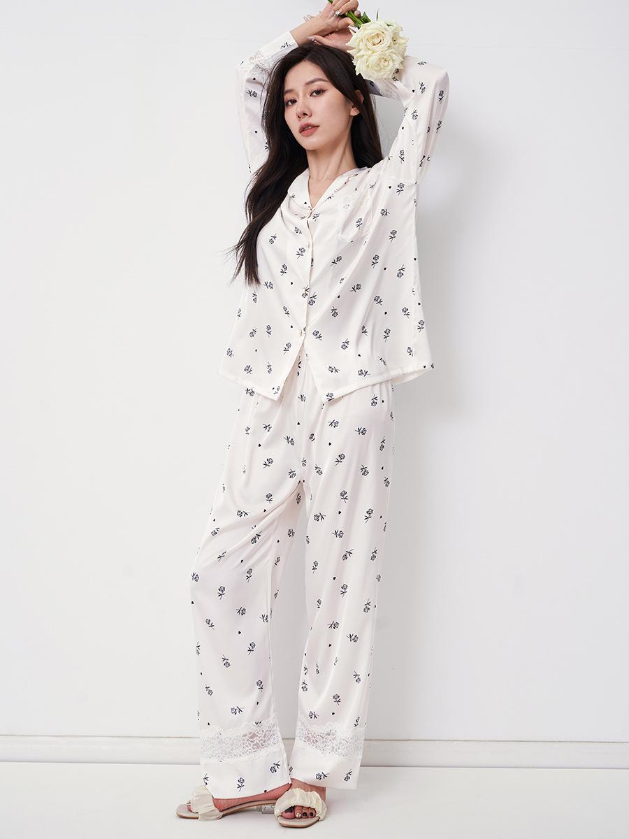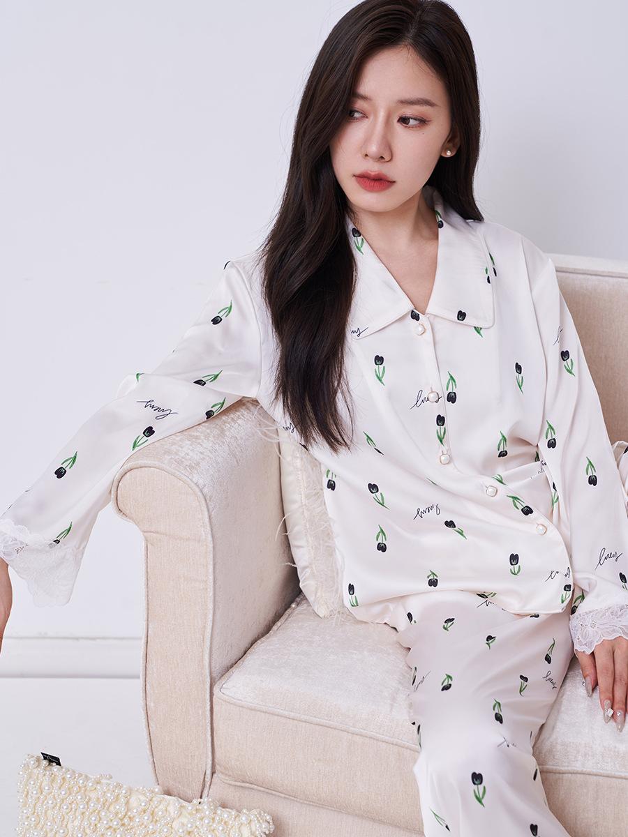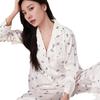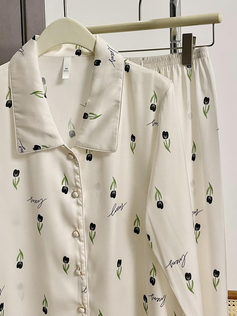 Pijama de Lujo Ligero Francés Rosa Negra para Mujer Seda de Hielo Seda de Alta Gama Floral Manga Larga Conjunto de Ropa para el Hogar