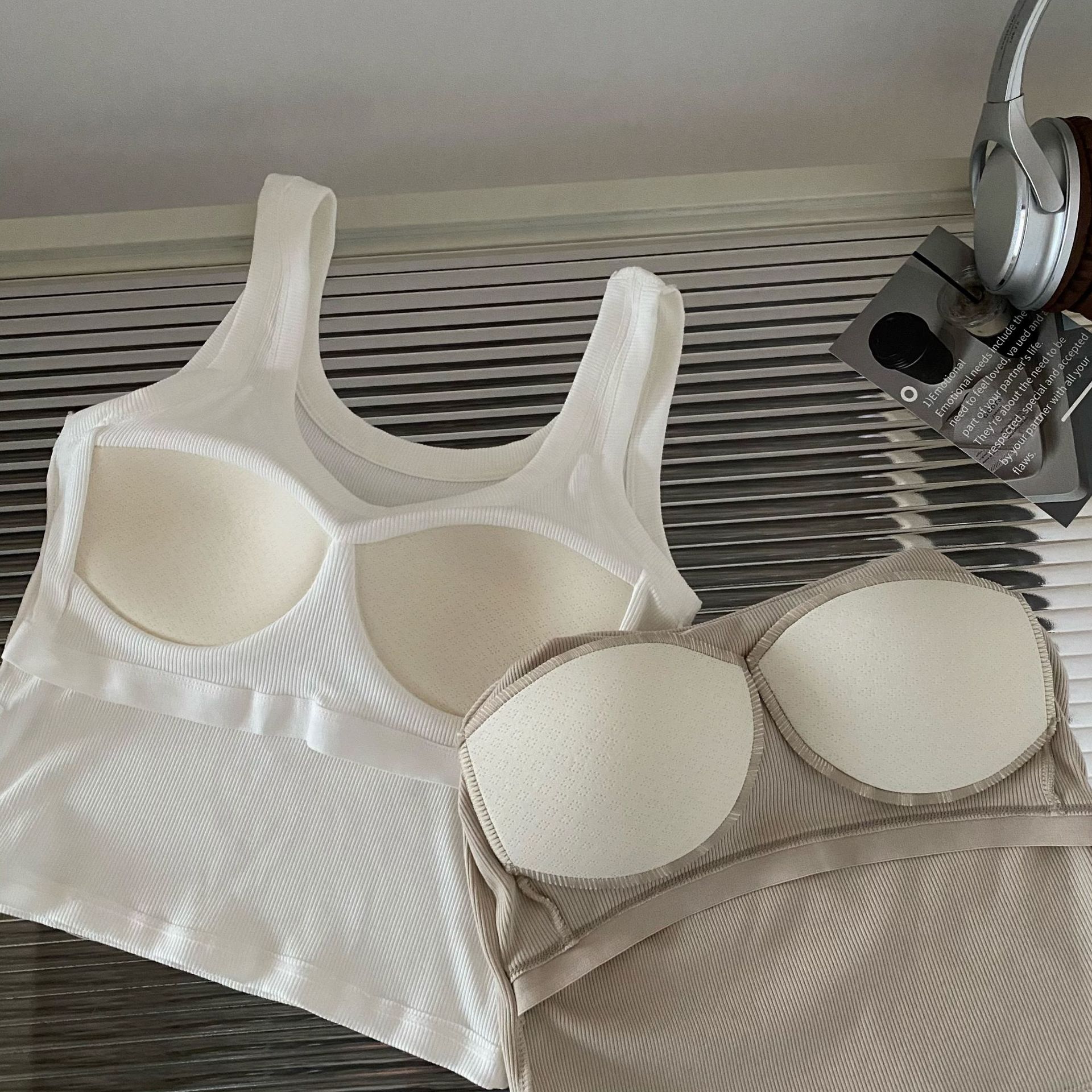Camisola sexy de una pieza con copa en forma de U y espalda descubierta para mujer, con base interior y exterior, sin mangas, combina con todo.
