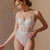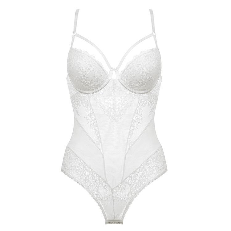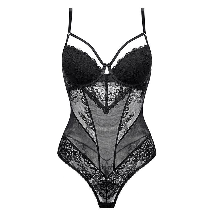 Íntimos Sexy de Una Pieza Europeos y Americanos para Mujer, Mono Francés de Encaje con Hermosa Espalda, Mono Micro-Moldeador Push-Up para Busto Pequeño