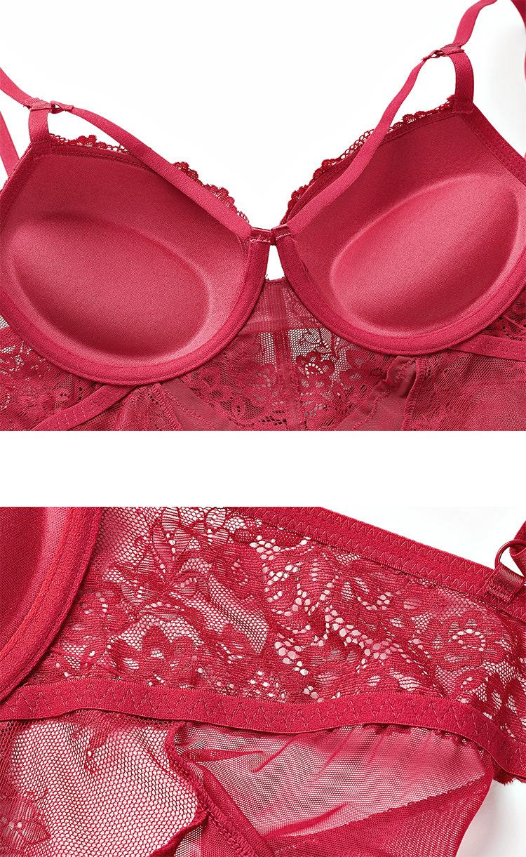 Nuevo sujetador de encaje sexy con realce de pecho pequeño, ropa interior de una pieza, mono moldeador de micro cuerpo rojo Benmingnian