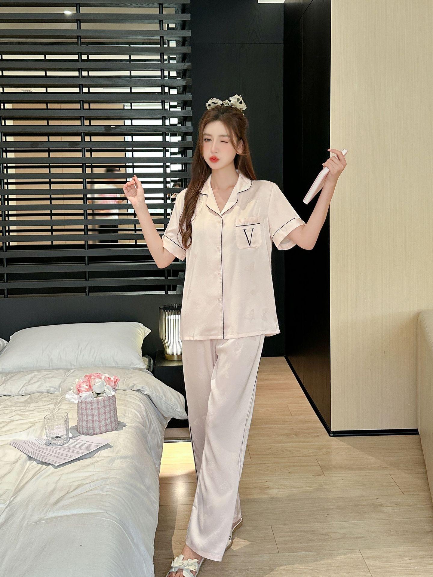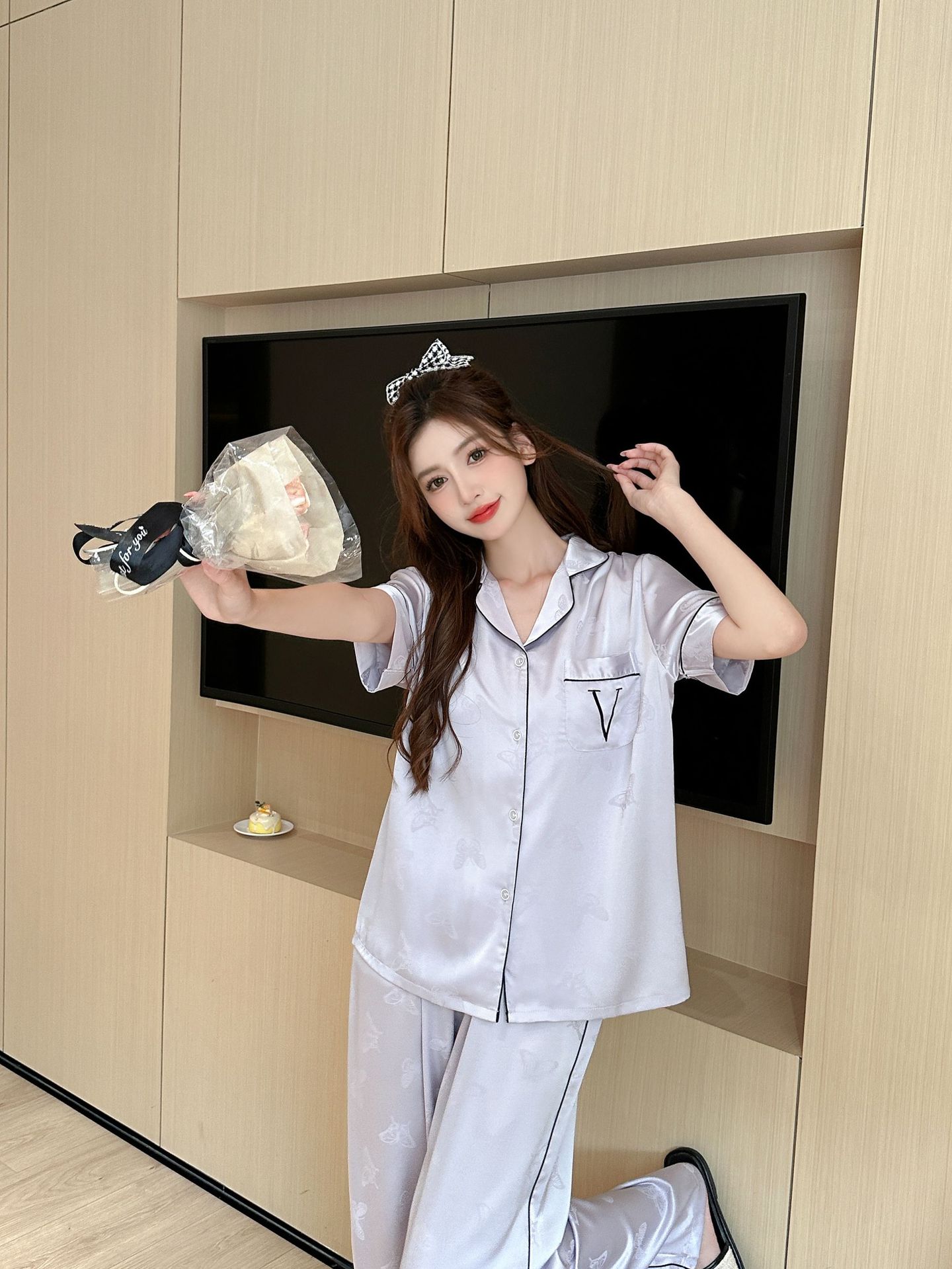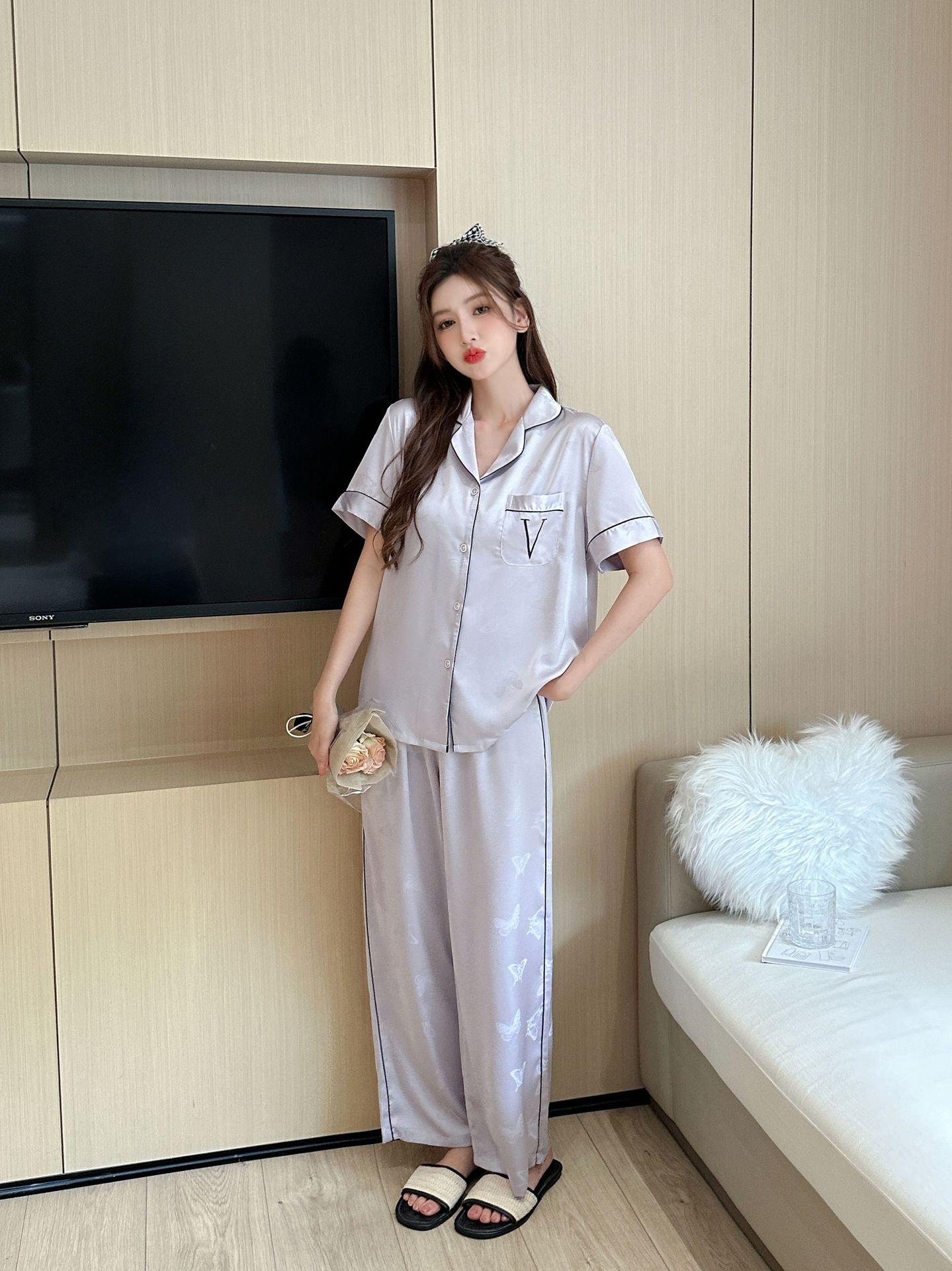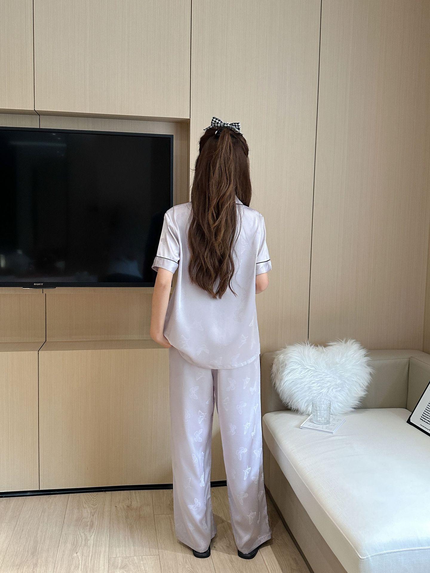 Pijamas de mujer nuevos de seda helada con estampado de mariposas para el hogar, otoño, manga corta, primavera, verano y otoño, 2666