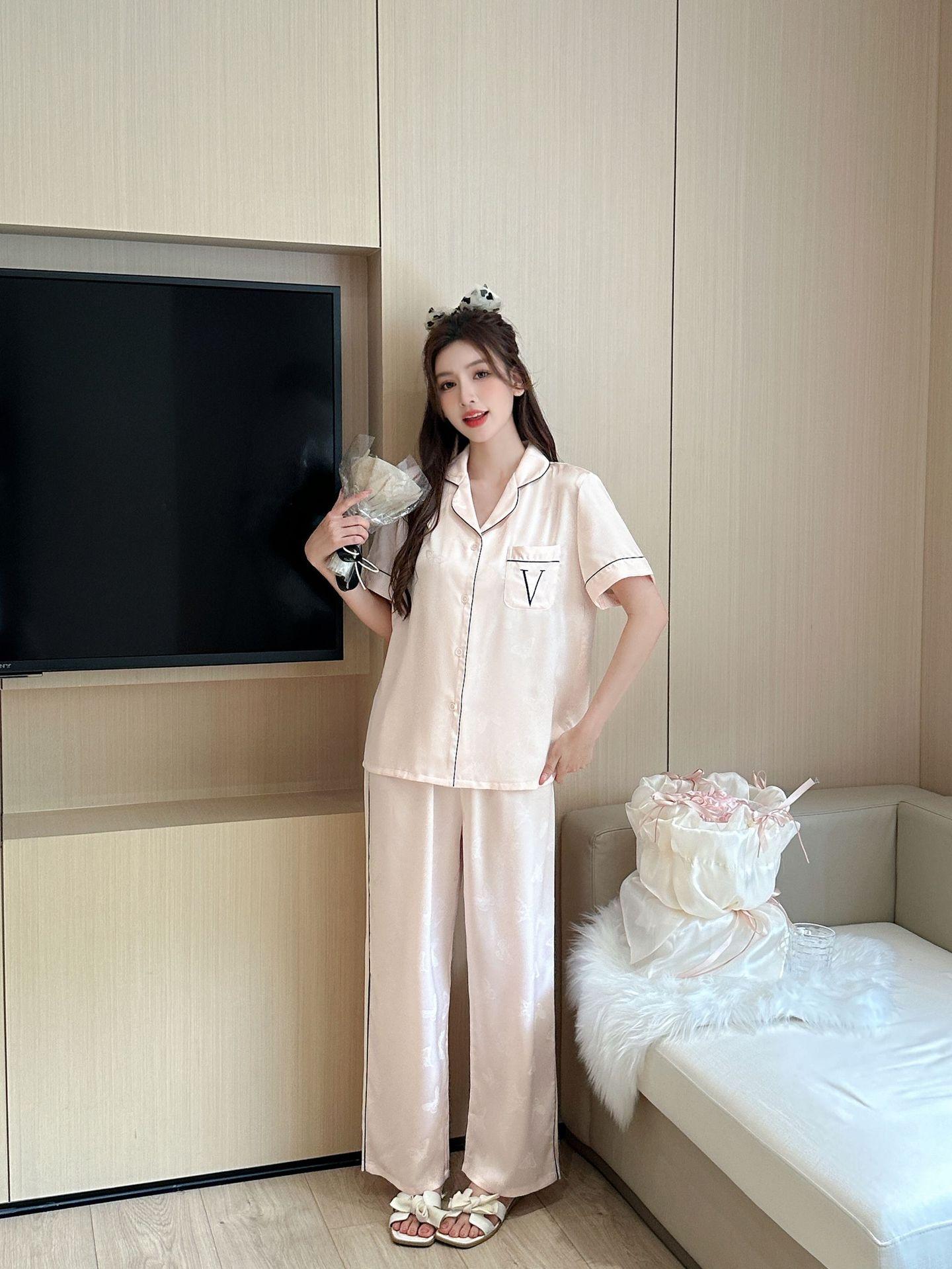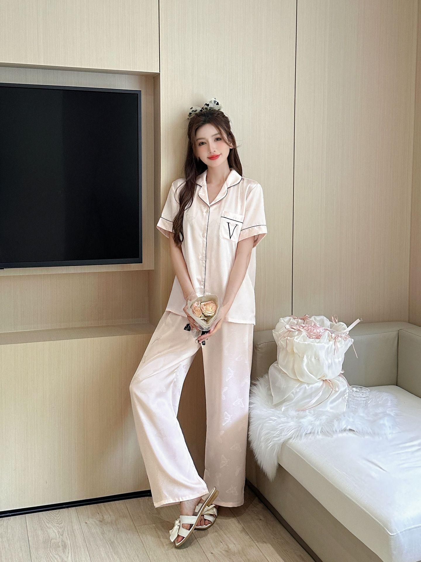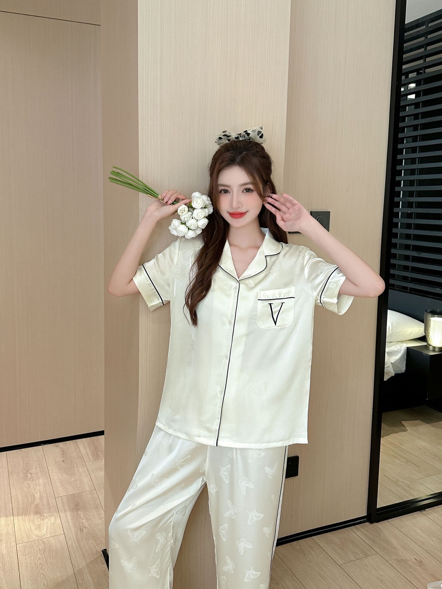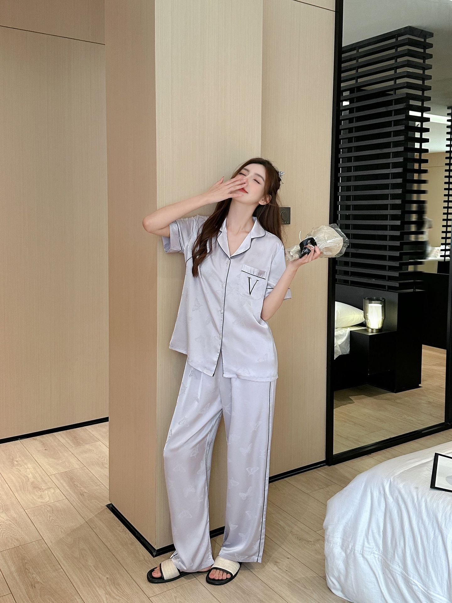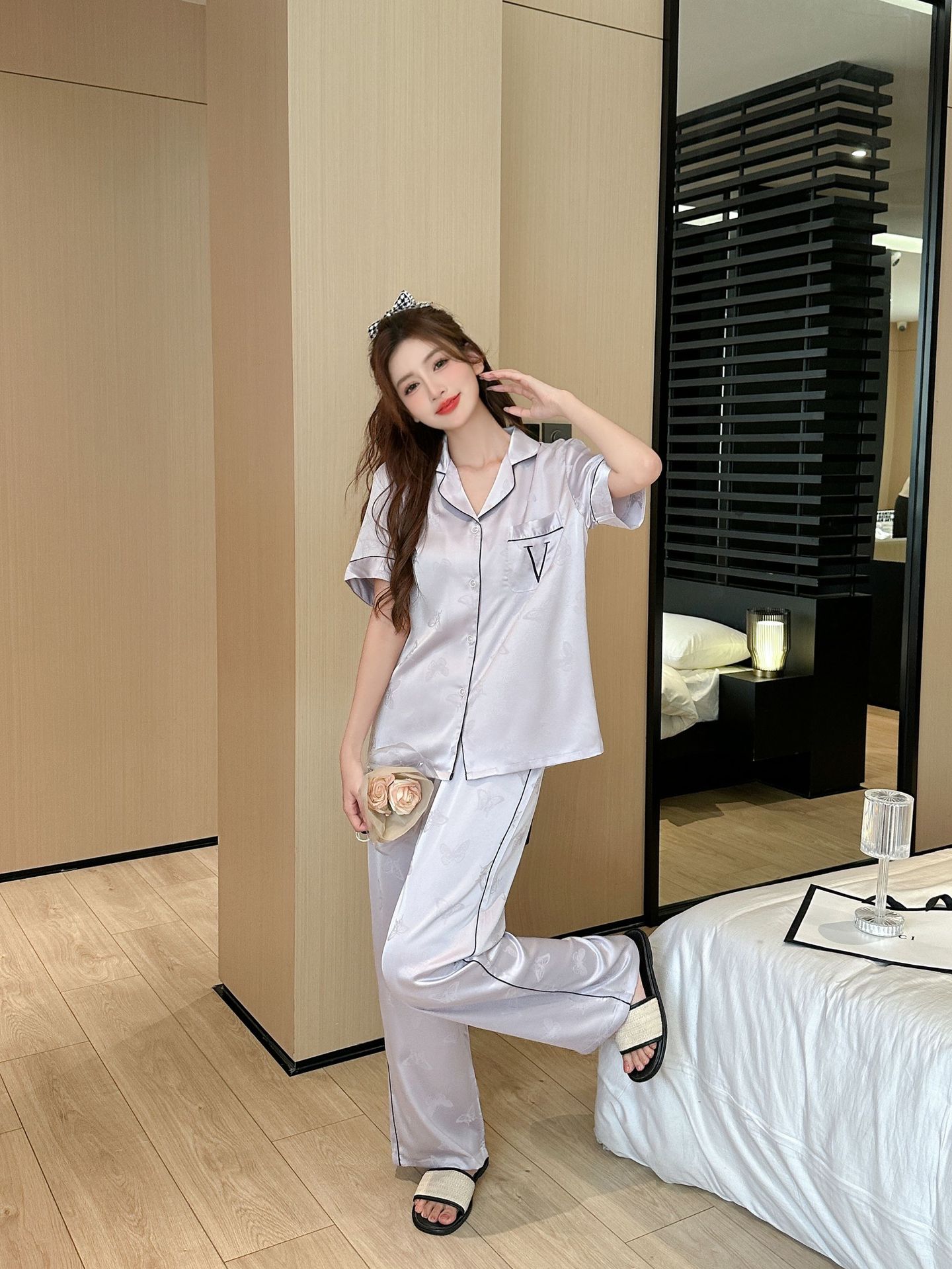 Pijamas de mujer nuevos de seda helada con estampado de mariposas para el hogar, otoño, manga corta, primavera, verano y otoño, 2666