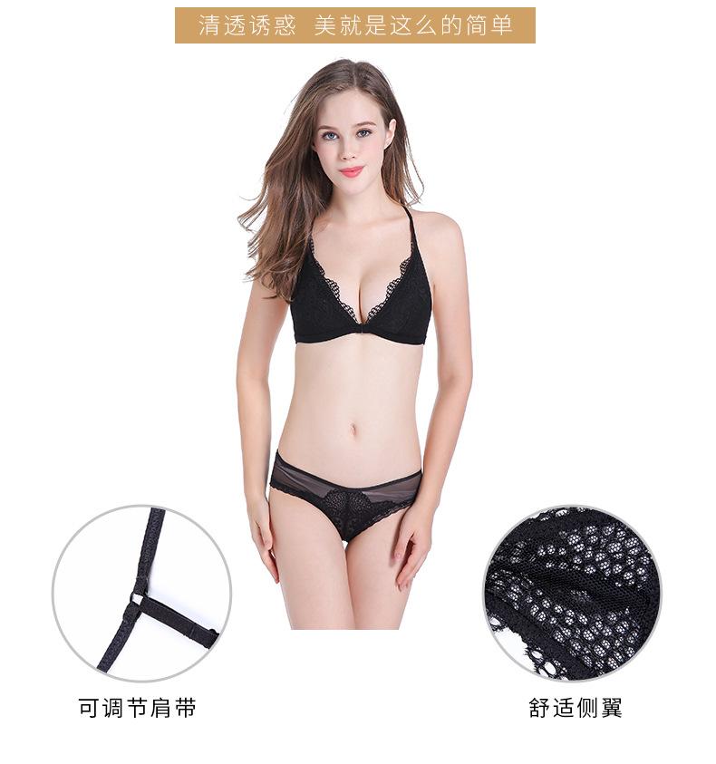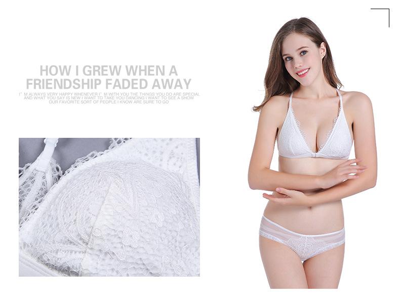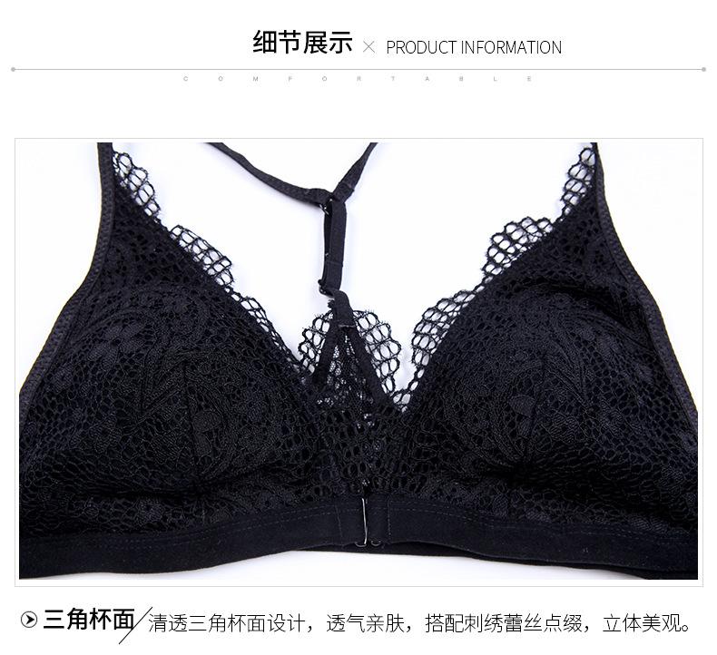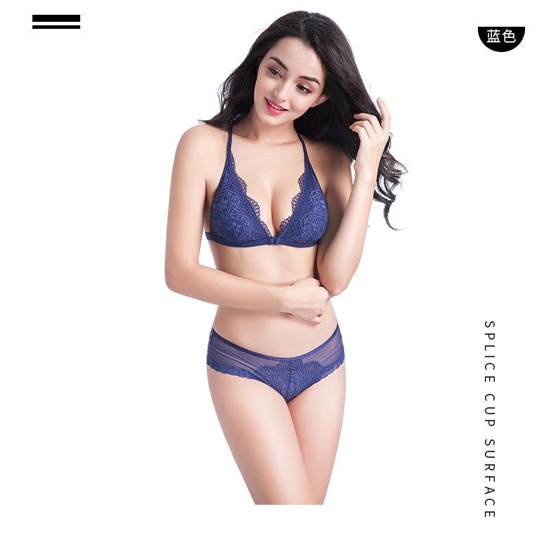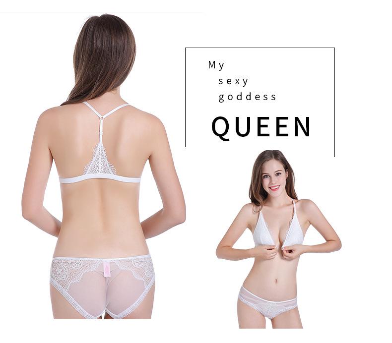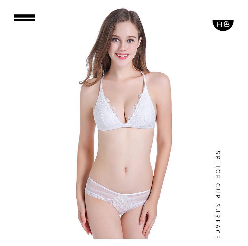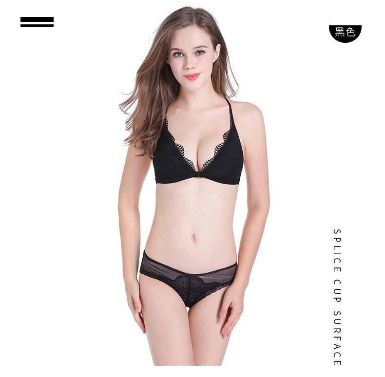 Conjunto de sujetador de copa triangular con hebilla frontal francesa, sin aro de acero, ropa interior sexy, ligera y transpirable, venta al por mayor, estilo europeo y americano, novedad de verano