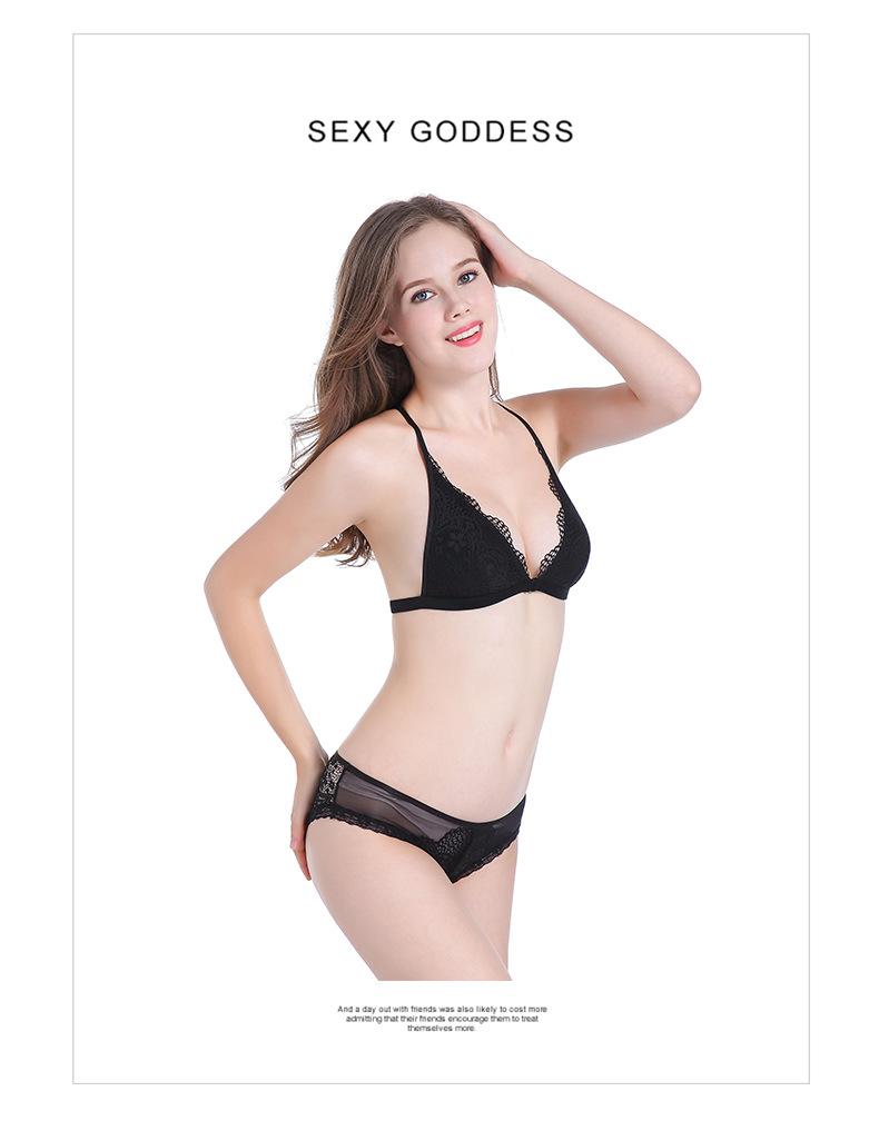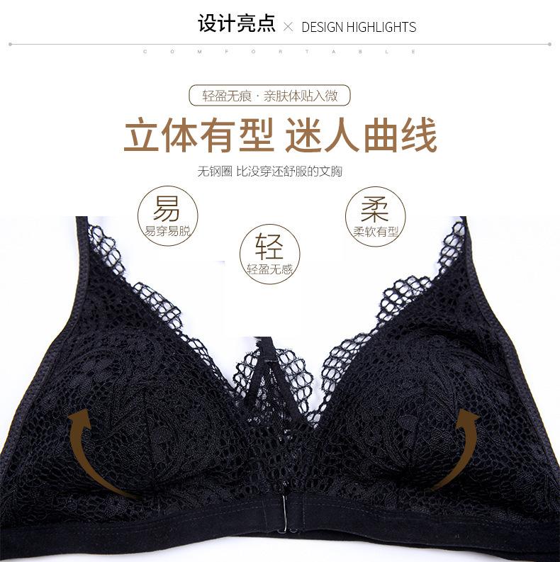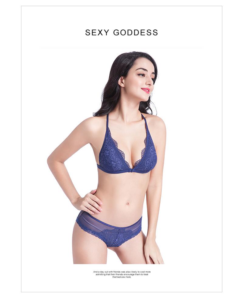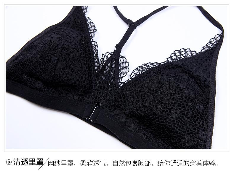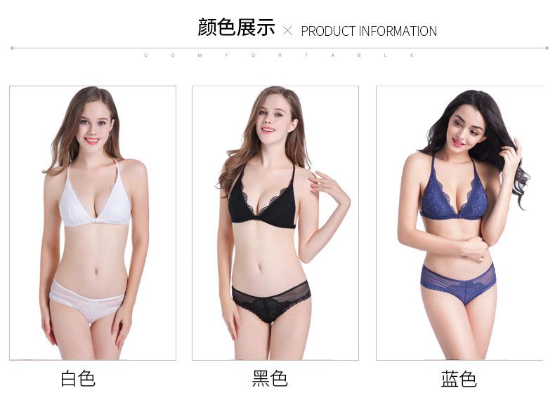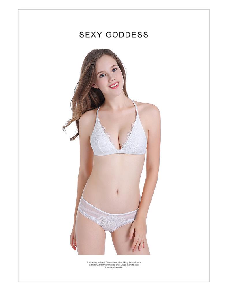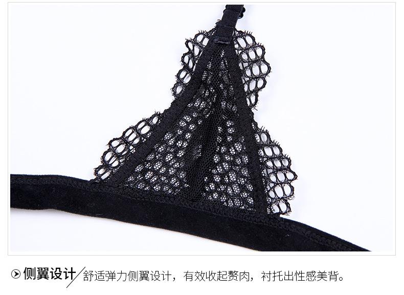 Conjunto de sujetador de copa triangular con hebilla frontal francesa, sin aro de acero, ropa interior sexy, ligera y transpirable, venta al por mayor, estilo europeo y americano, novedad de verano