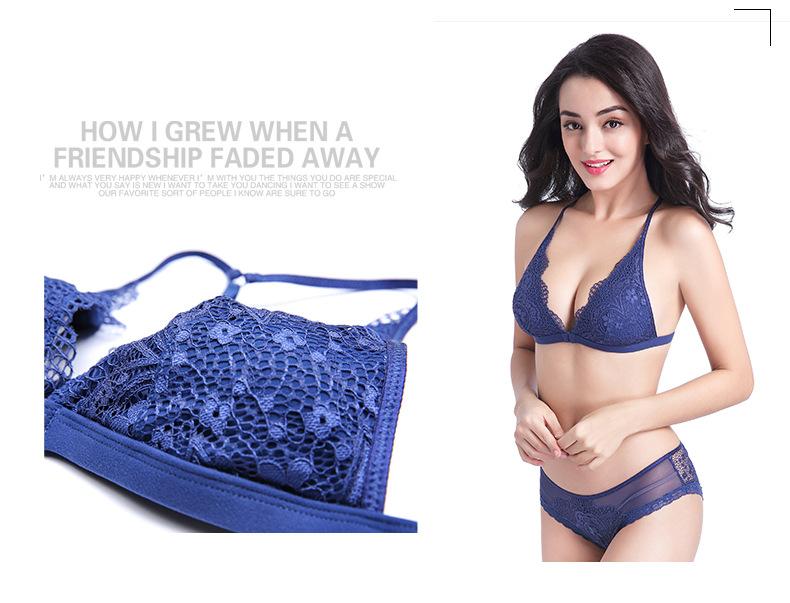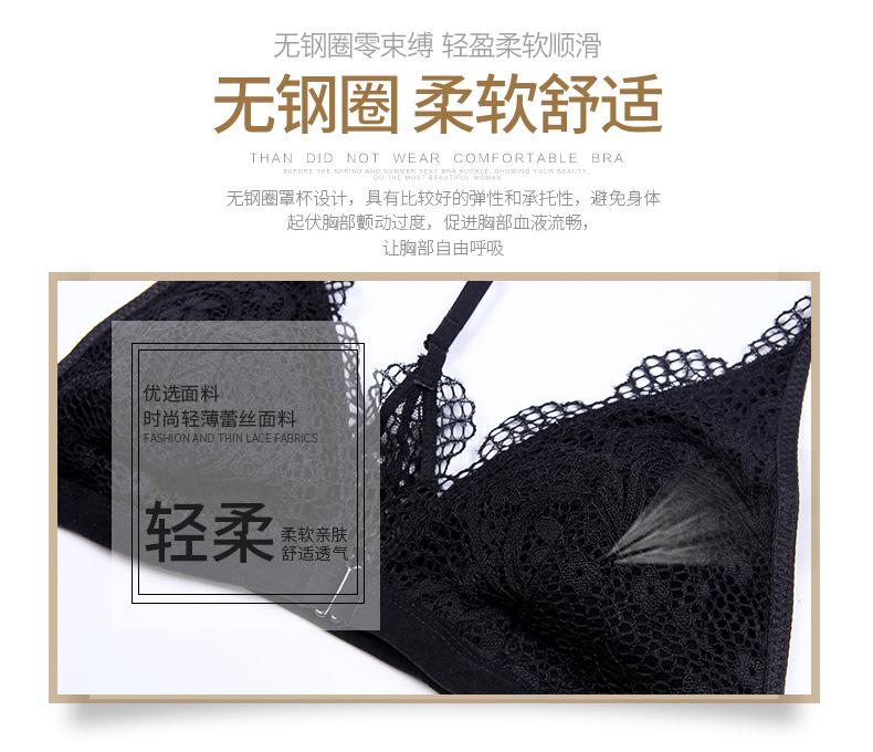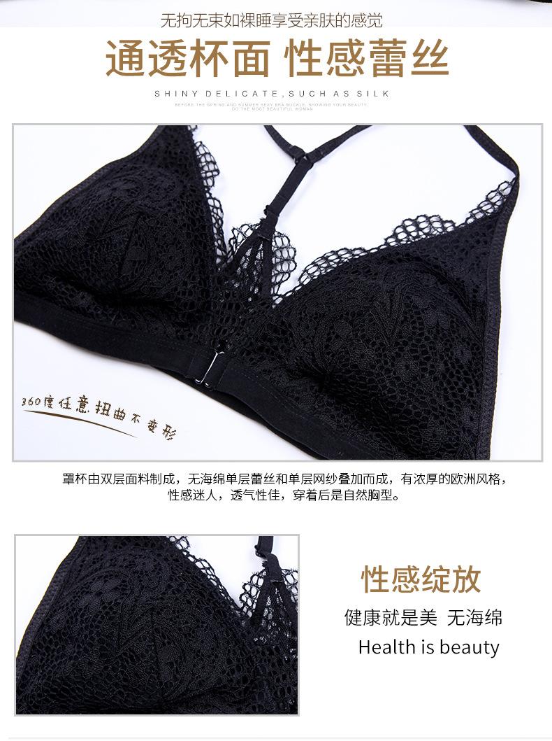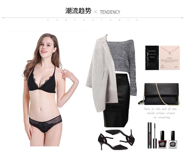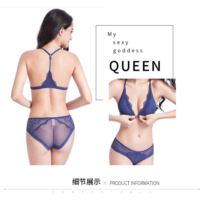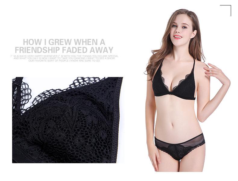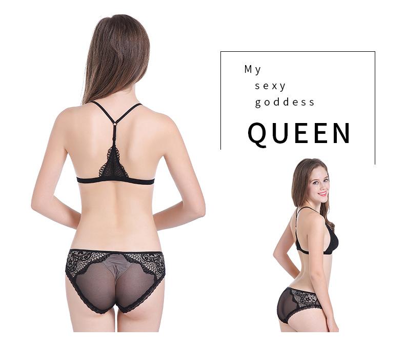 Conjunto de sujetador de copa triangular con hebilla frontal francesa, sin aro de acero, ropa interior sexy, ligera y transpirable, venta al por mayor, estilo europeo y americano, novedad de verano