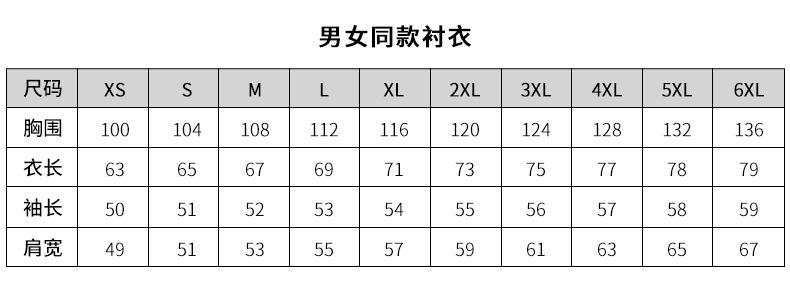 XS, S, M, L, XL, XXL, 3XL, 4XL, 5XL, 6XL