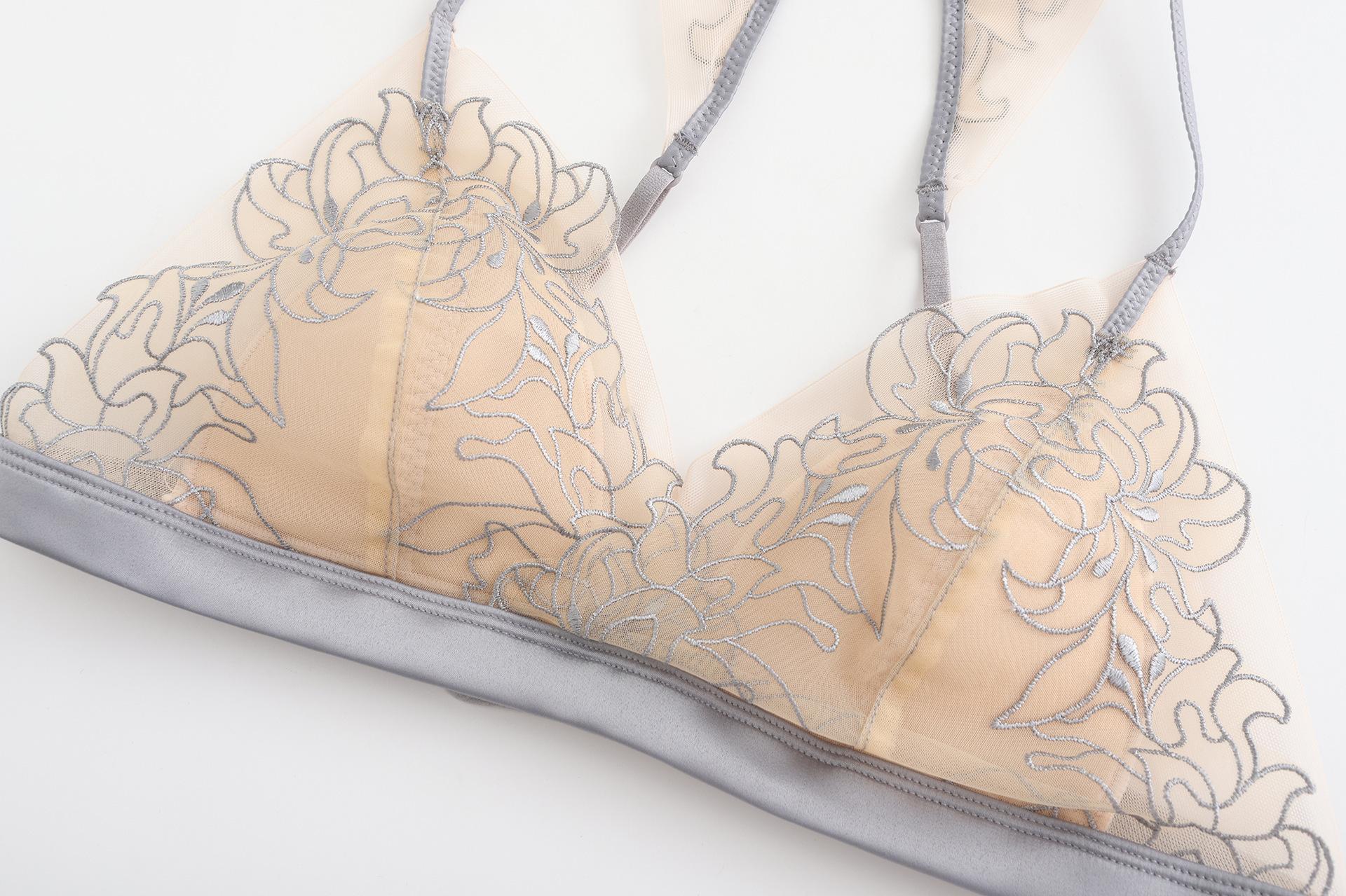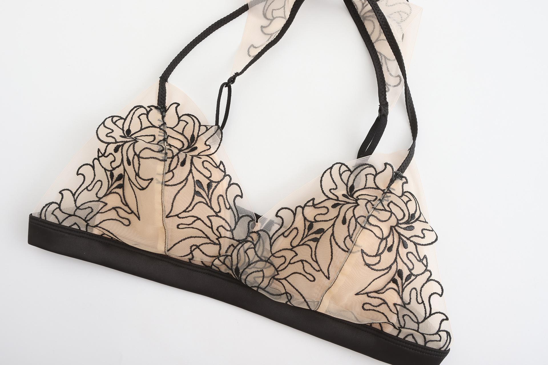 Íntimos Sexy Franceses Cruz Hermosa Espalda Copa Triángulo Sin Varillas Íntimos Delgados Puros Lujuria Encaje Bordado Set de Brasier