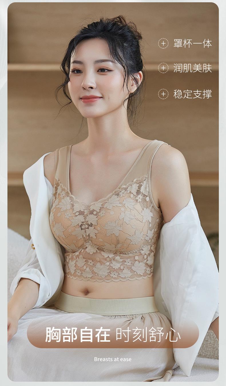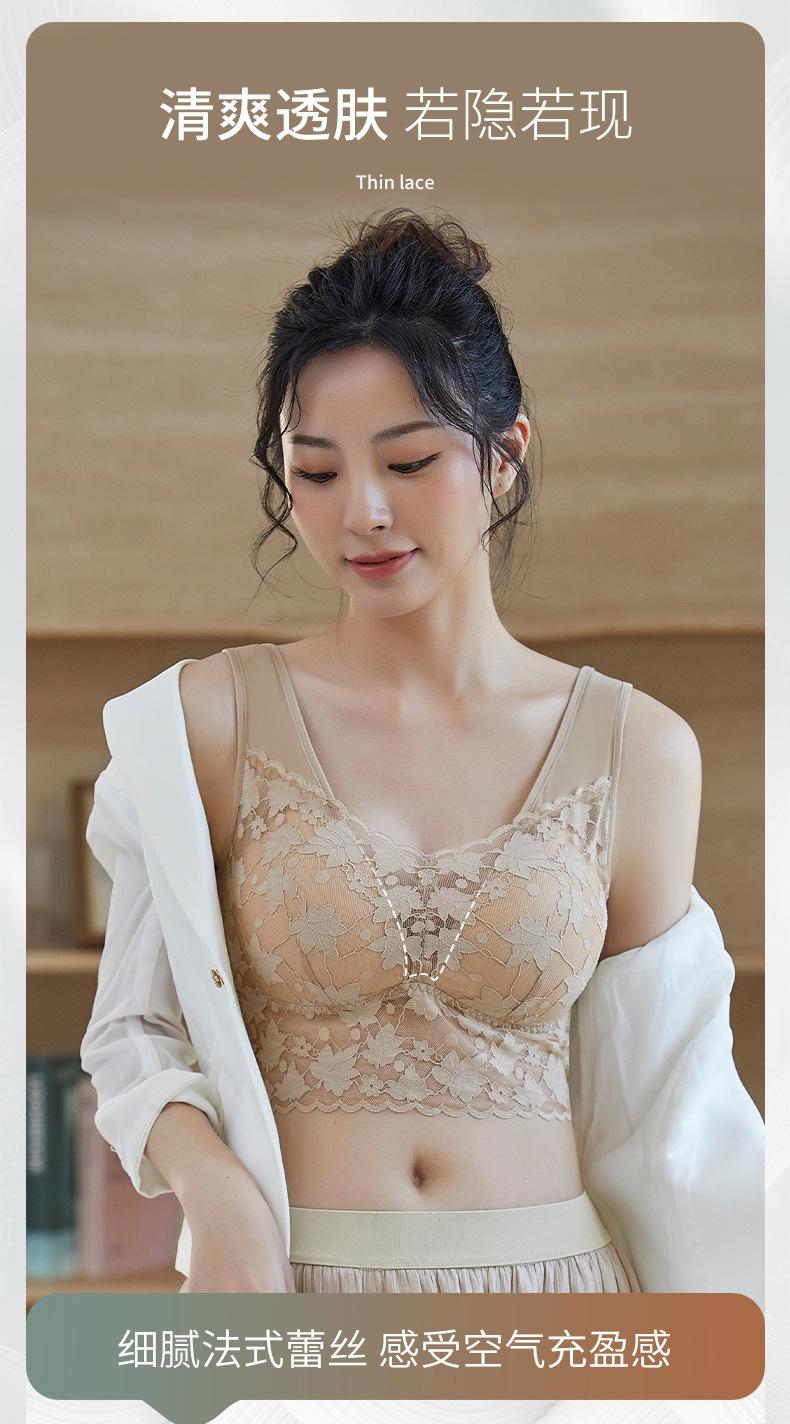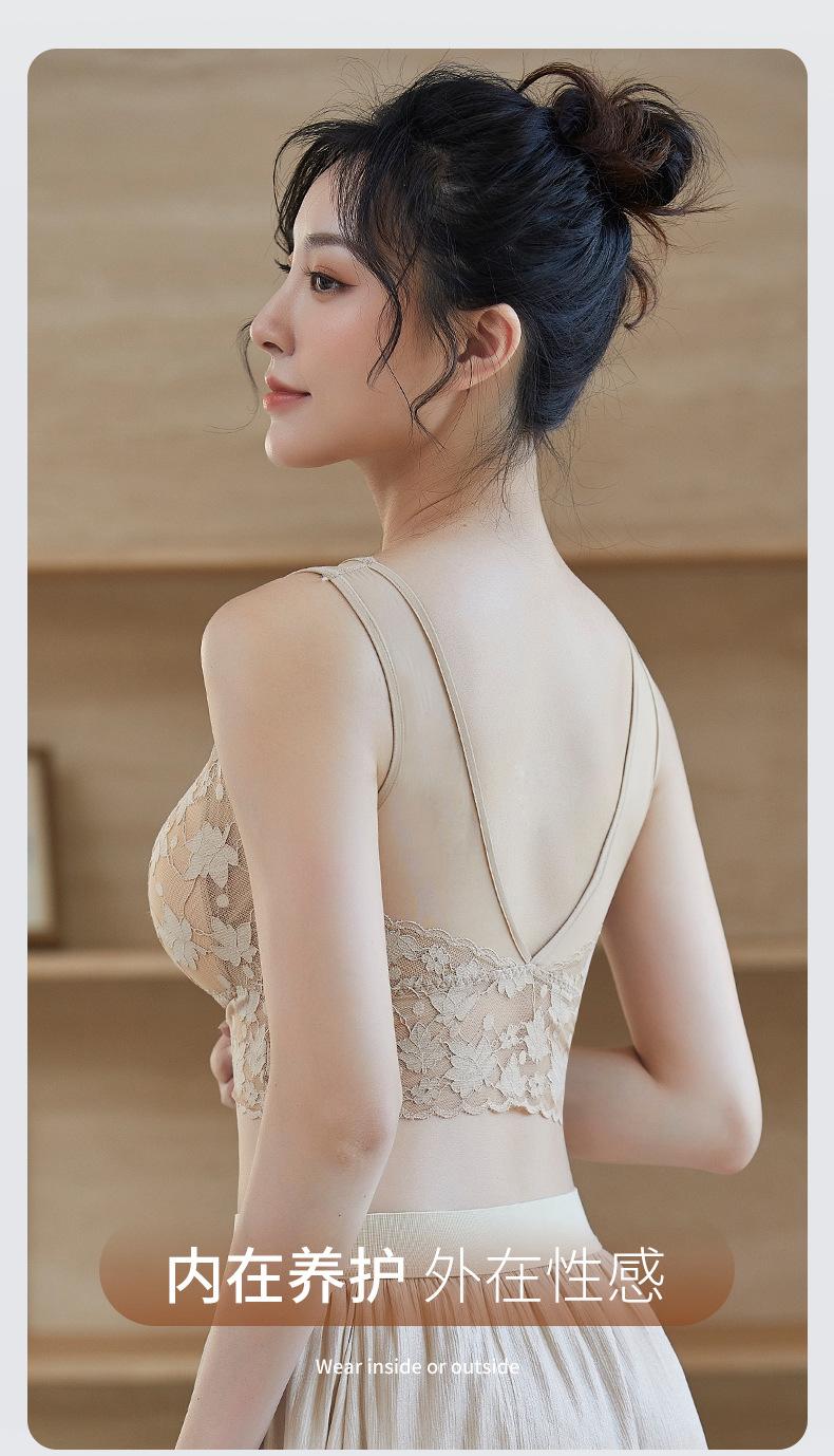 Chaleco sexy de encaje en la espalda que combina con todo, envuelve el pecho, sin aro de acero, copa fija, anti-caída, transpirable, recogido, ropa interior de encaje para mujer