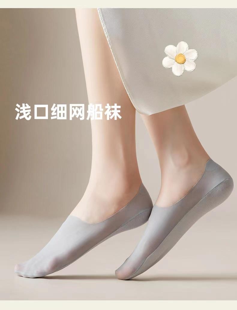 Calcetines náuticos de verano para mujer, de seda fina de hielo, de boca baja, de algodón, invisibles, de malla de color liso, transpirables y antideslizantes.