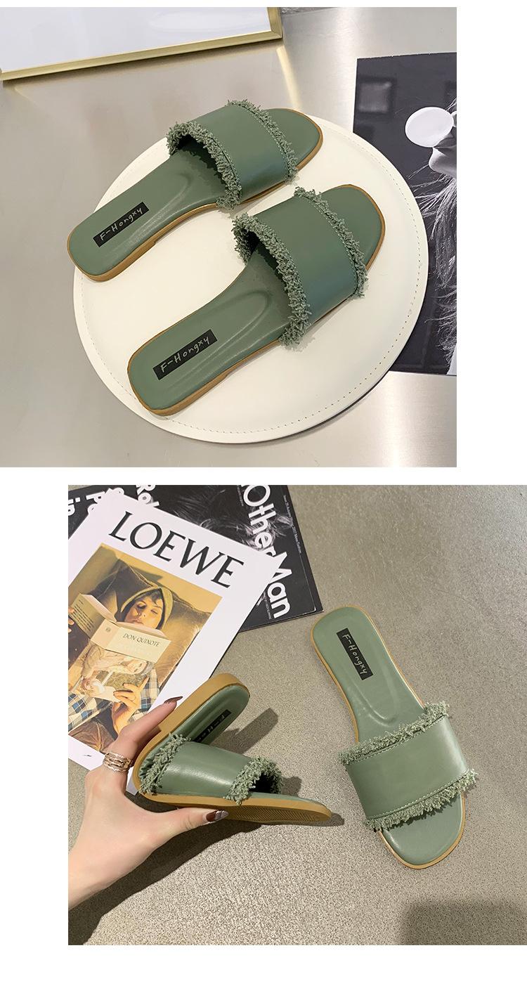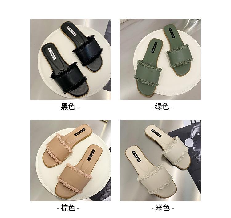 Sandalias y pantuflas nuevas de verano 2020 para mujer, estilo coreano, de suela plana, de moda, para exteriores, sandalias y pantuflas con borlas de una palabra