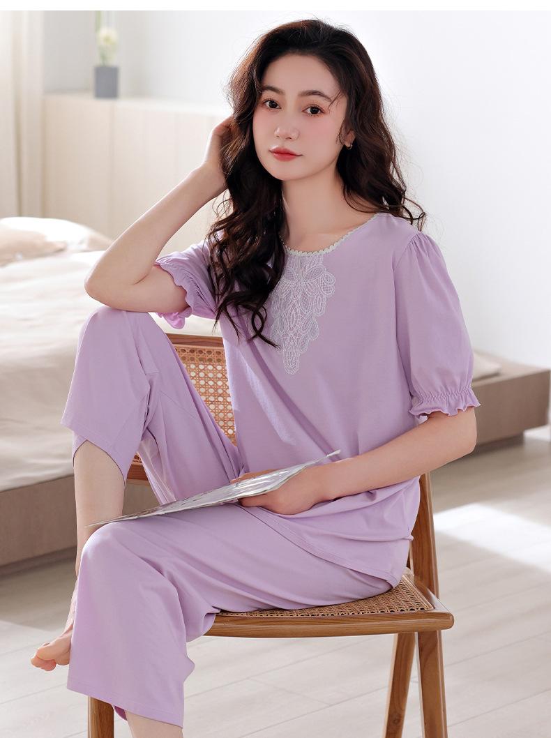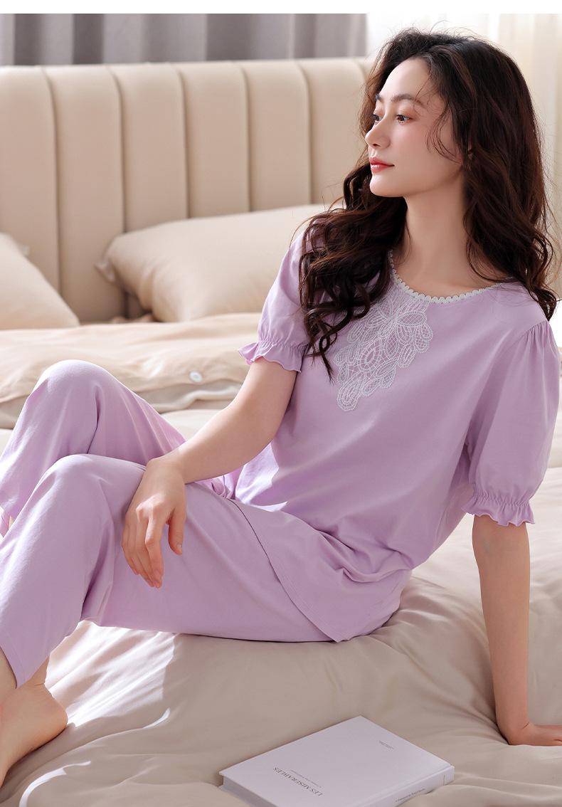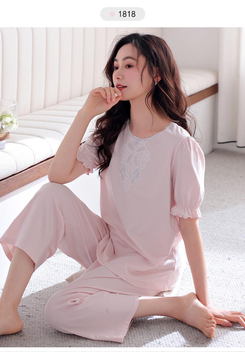 Pijama de mujer de modal de manga corta, pantalones, ropa de casa, moda de verano, informal, para jóvenes y mediana edad, traje de exterior de dos piezas