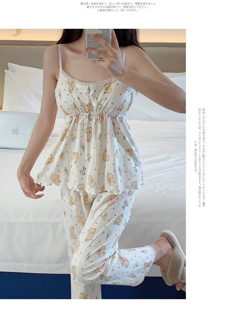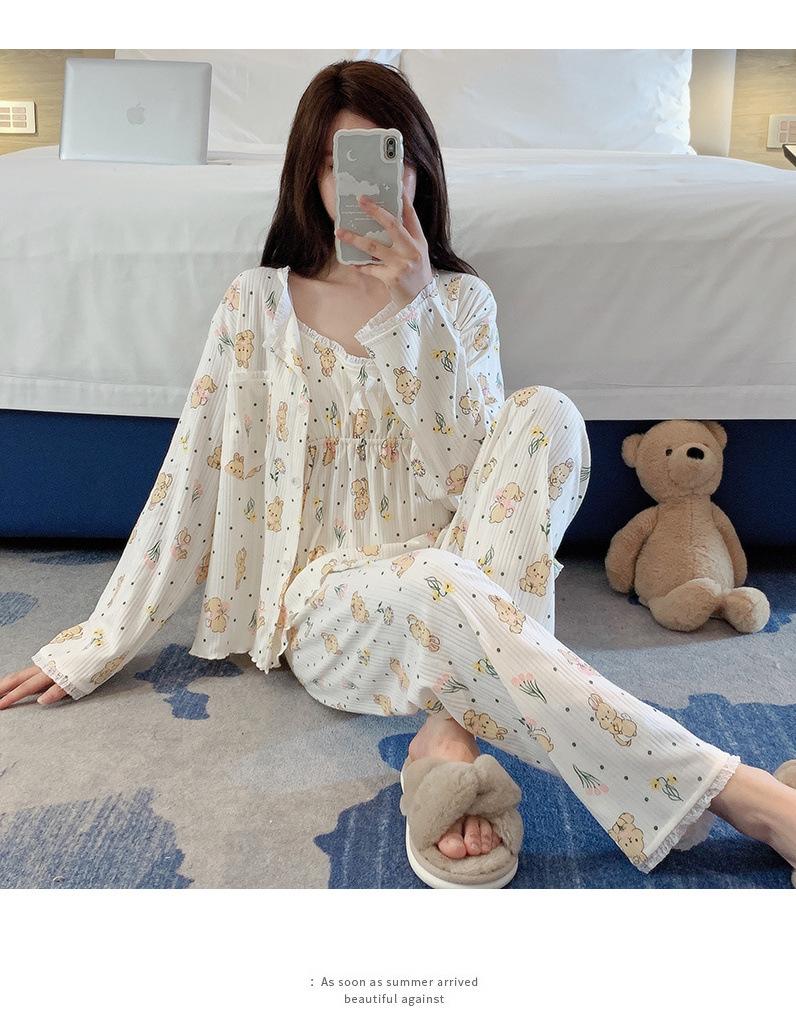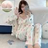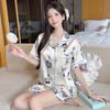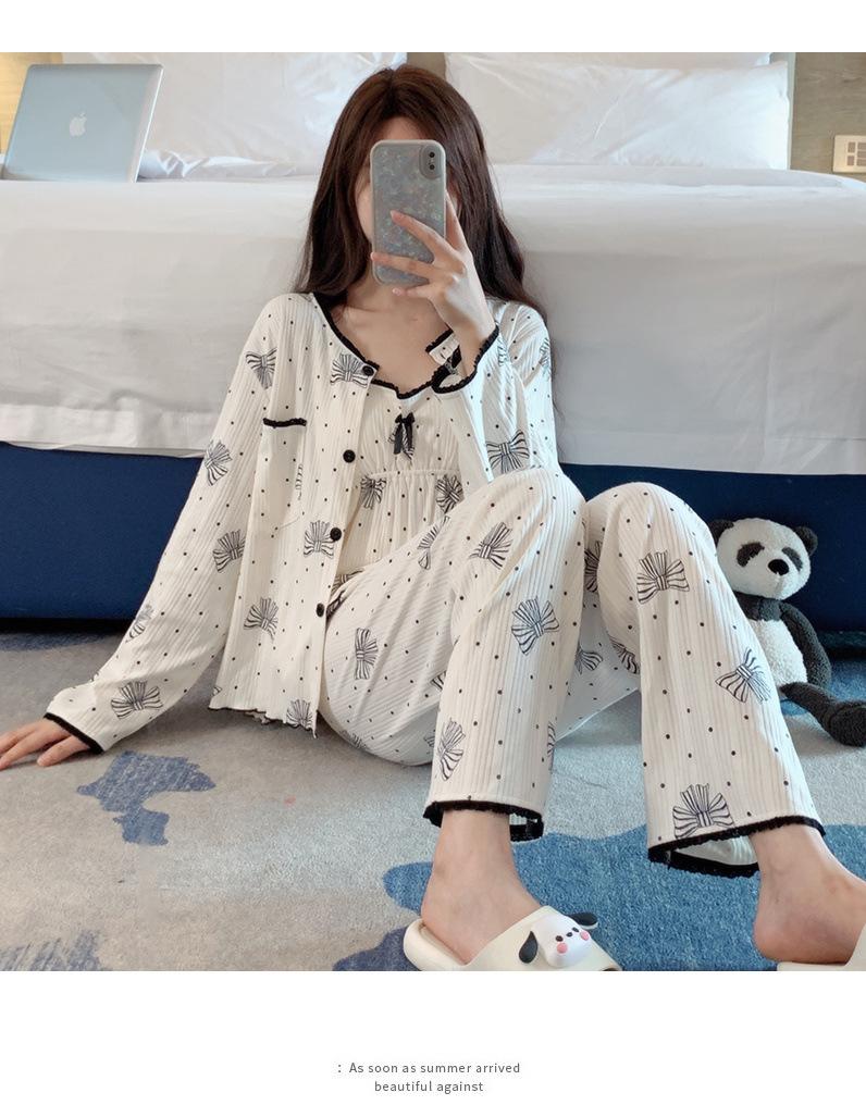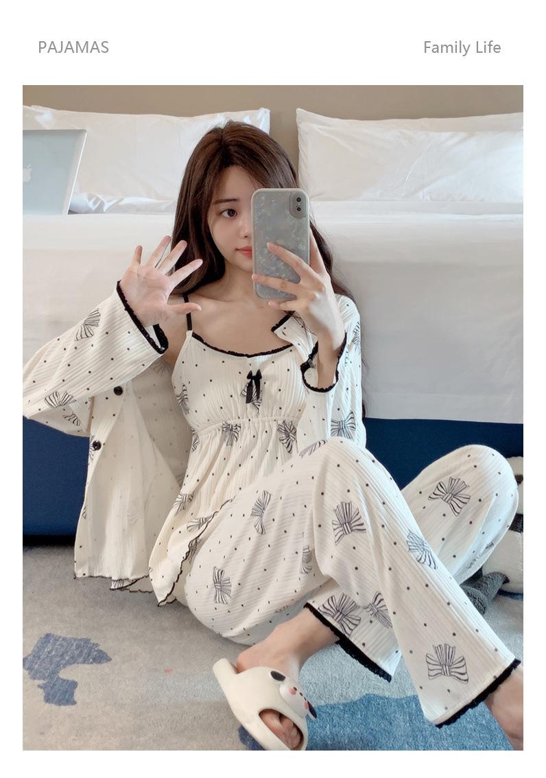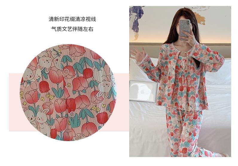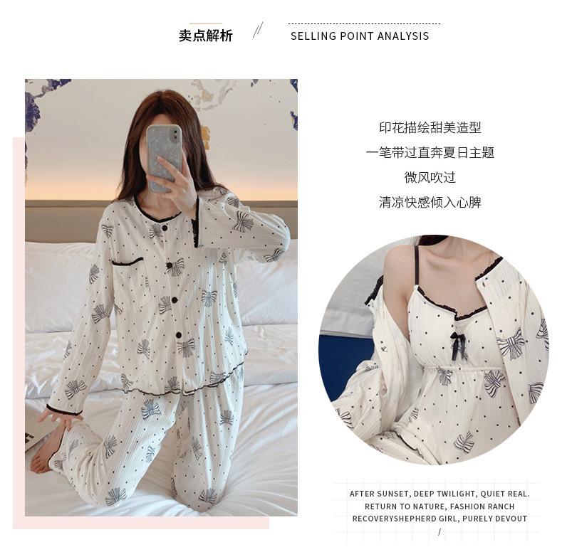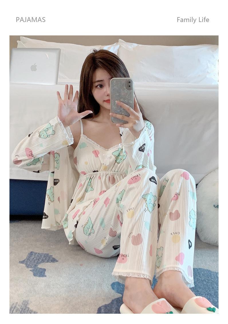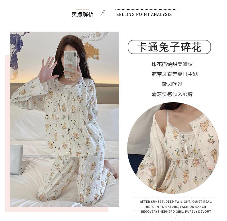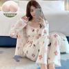 Pijama floral estilo perezoso para mujer, conjunto de tres piezas, primavera y otoño, fino, de verano, para niña, ropa de casa, con tirantes desmontables y almohadilla para el pecho.