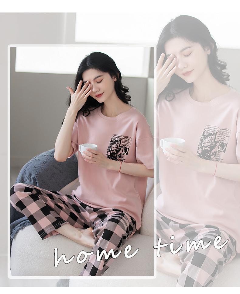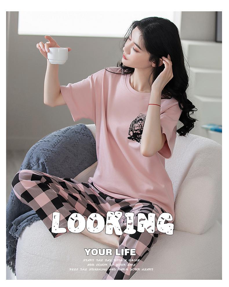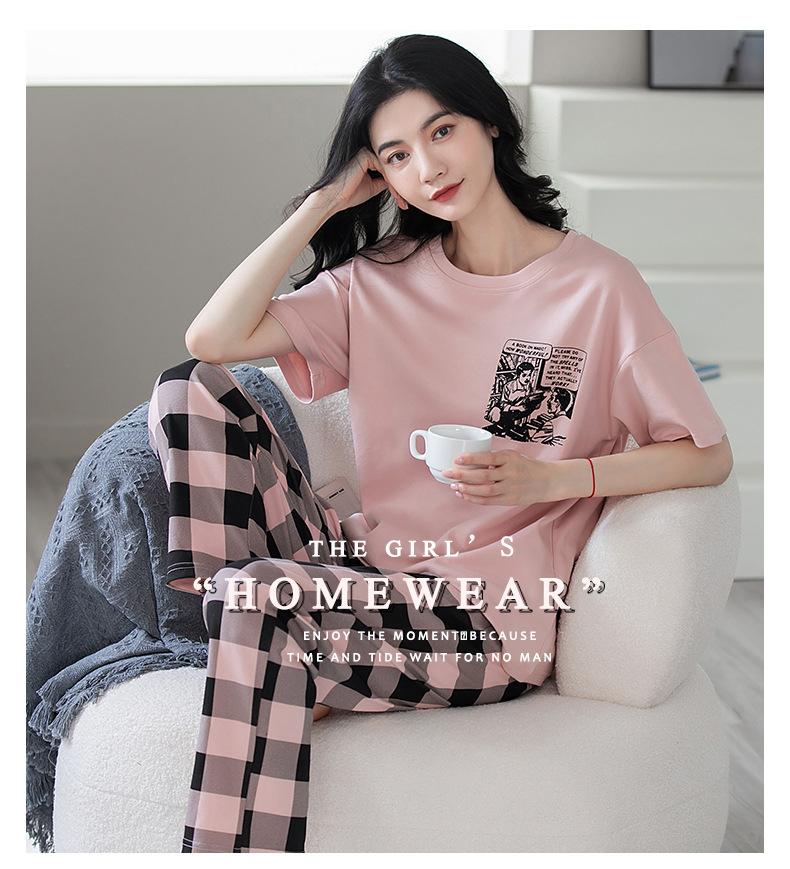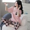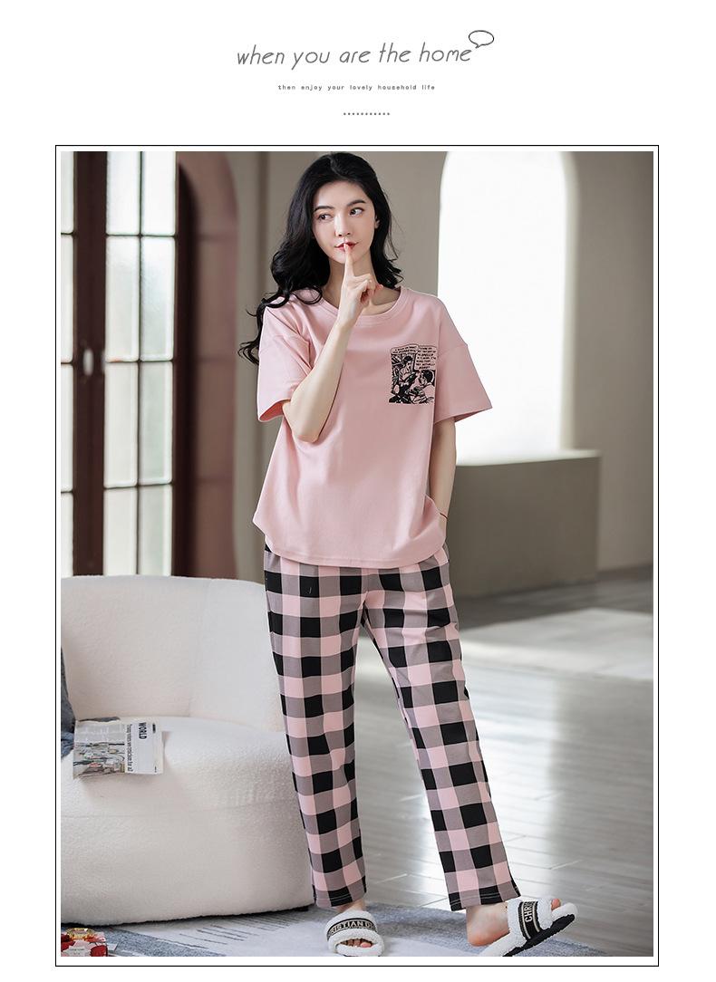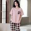 Pijamas de algodón puro de primavera y verano para mujer, pantalones de manga corta, traje fino, de moda, informal, para jóvenes, ropa de abrigo para el hogar.