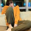 Pijama de algodón para mujer, de manga larga, fino, holgado, de talla grande, transpirable, para el hogar, primavera y otoño, prendas de vestir sencillas.