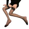 Medias largas de seda negra para mujer, sexys, ultrafinas, hasta la rodilla, de malla de encaje puro en blanco y negro.