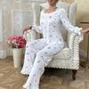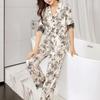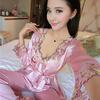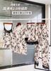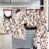 Pijama de Encaje de Flores de Rosa Set de Cuatro Piezas para Mujer Moda de Verano Estampado Pintura con Tinta Cómodo Elegante Ropa de Casa Traje