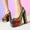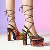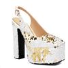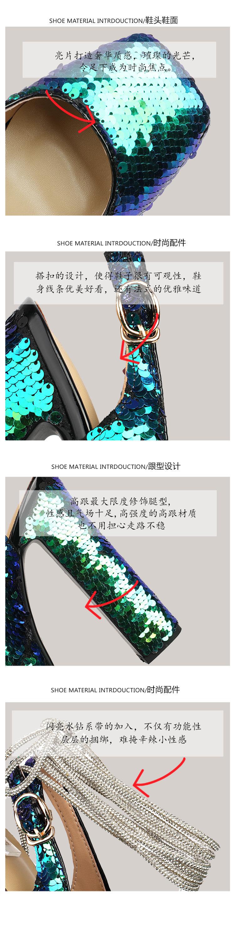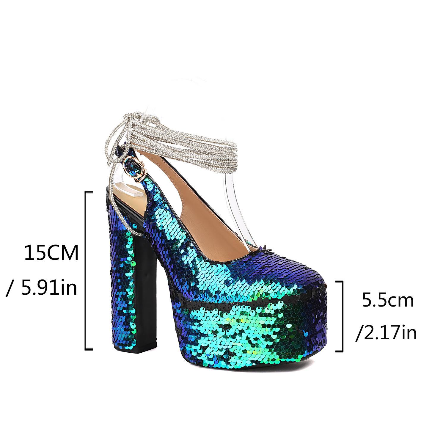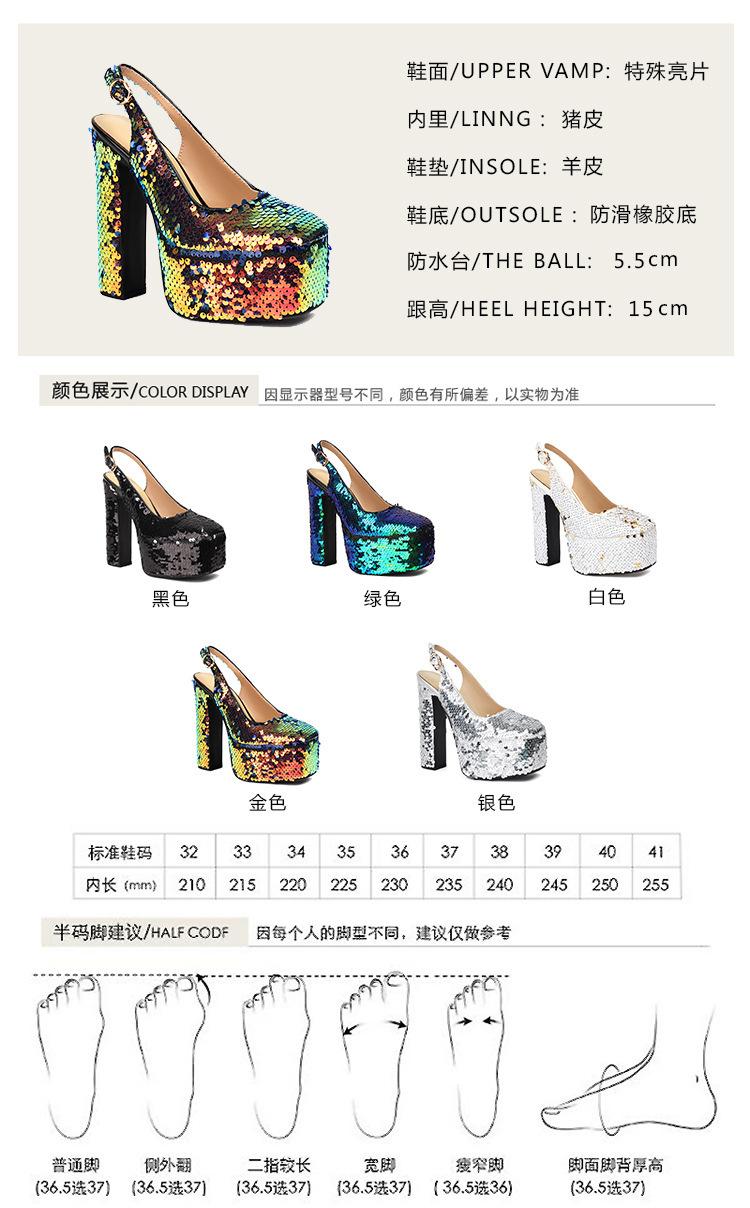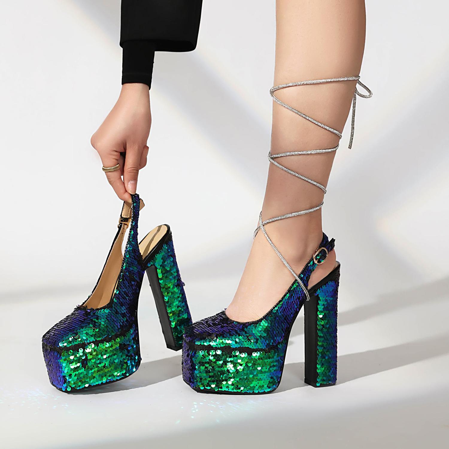 Sandalias Baotou de tacón alto con cadena de lentejuelas y cabeza cuadrada, para mujer, talla grande, para comercio exterior transfronterizo, 2024