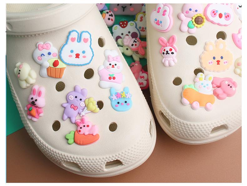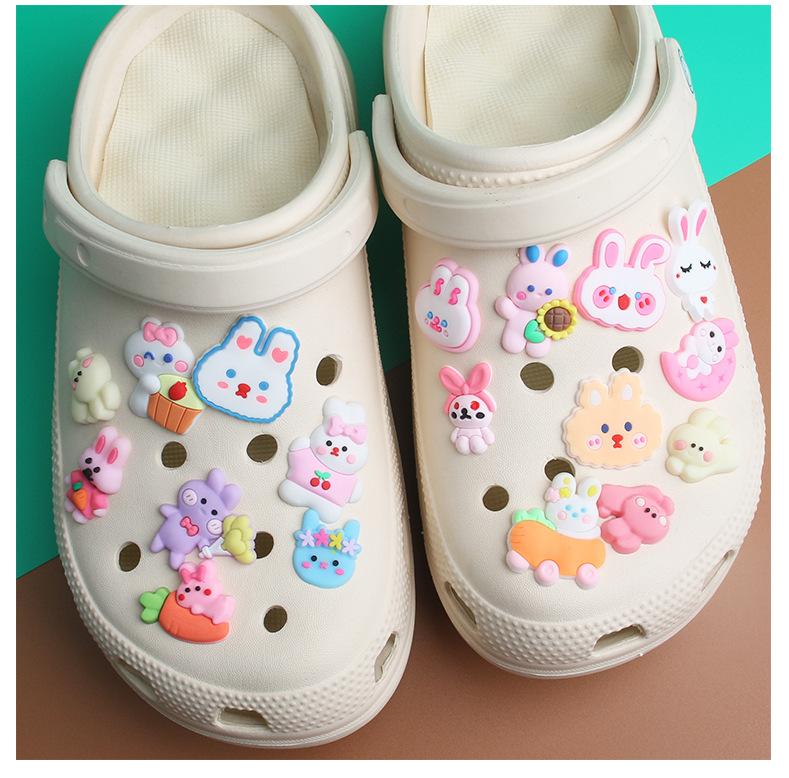 Nuevo en stock al por mayor parche de PVC de conejo de verano DIY para zapatos con agujeros hebilla decorativa flor para zapatos hebilla para zapatos con accesorios hechos a mano