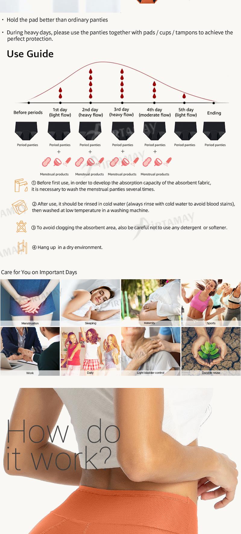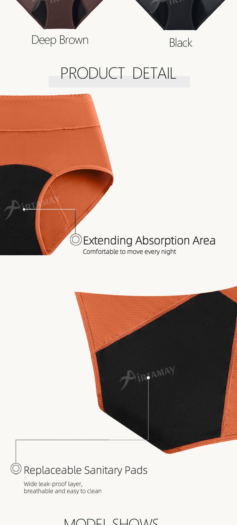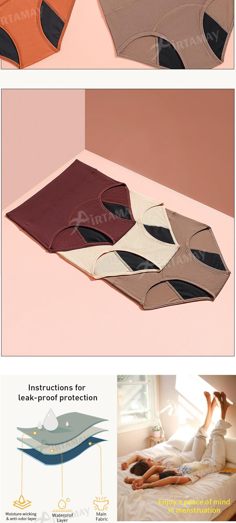 Ropa interior femenina con absorción de 3 capas, multicolor, opcional, popular en Amazon, con agujeros transpirables y a prueba de fugas, pantalones fisiológicos para el período menstrual.