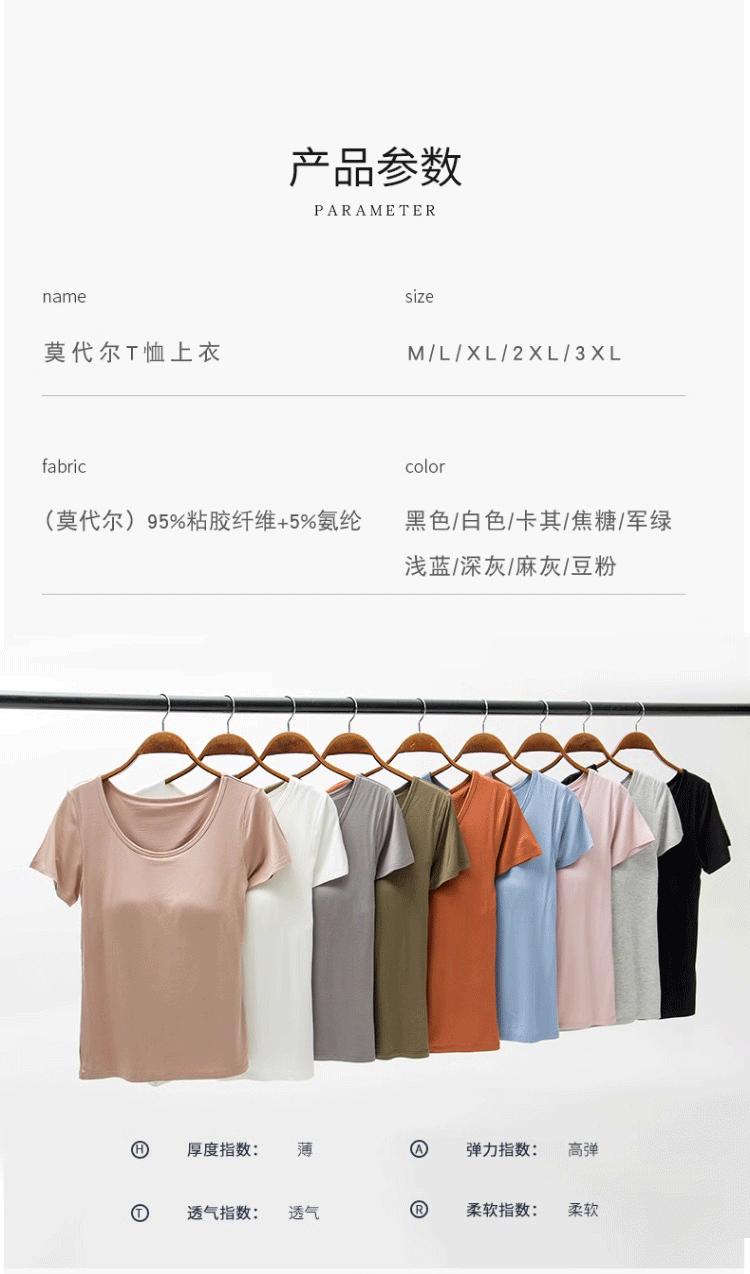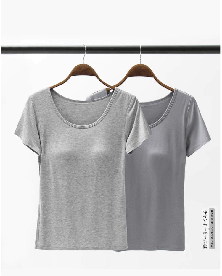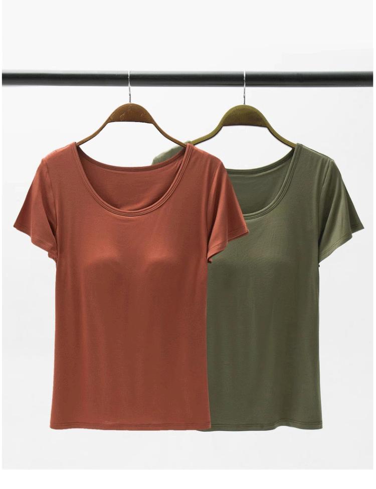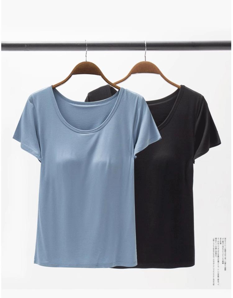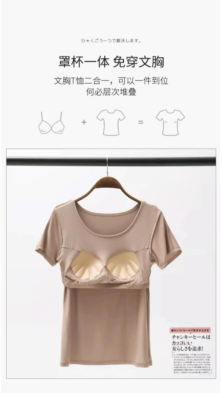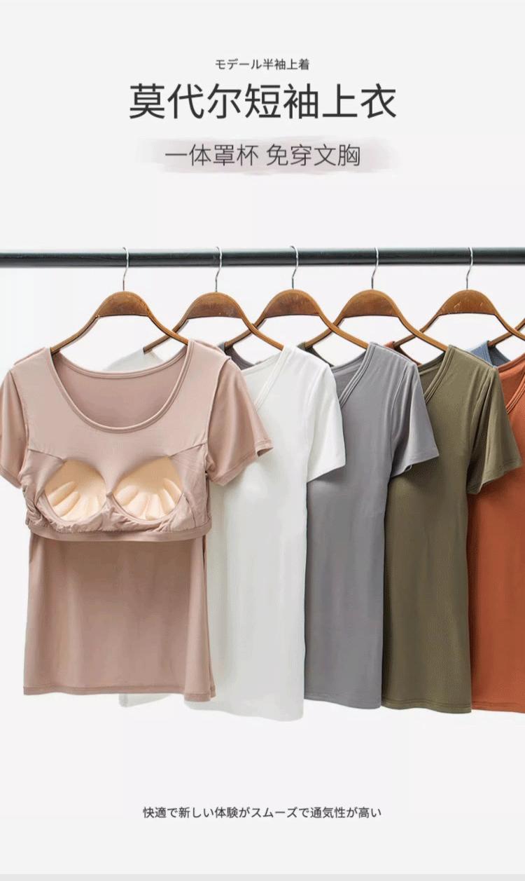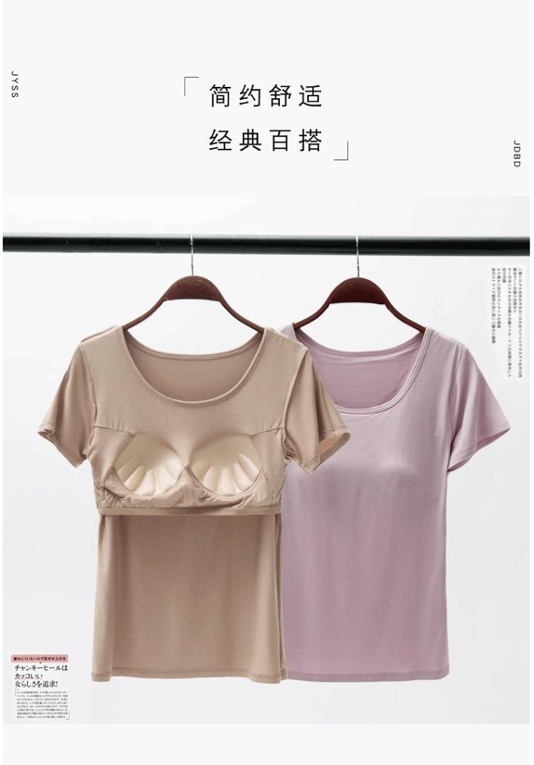Camiseta de manga corta push-up modal con almohadilla para el pecho BRA-t sin sujetador de media manga con copa de cinco dedos Pijama de puesto Base