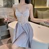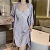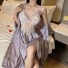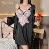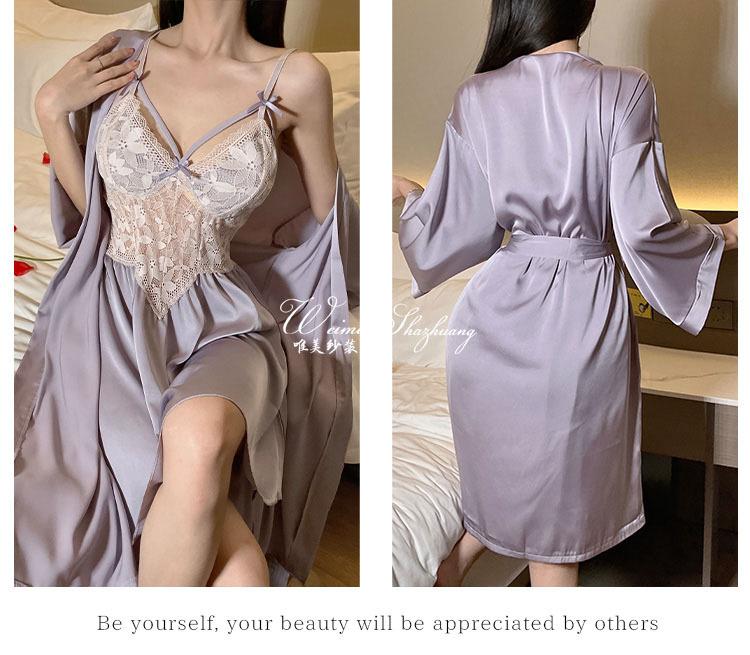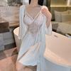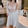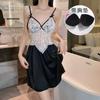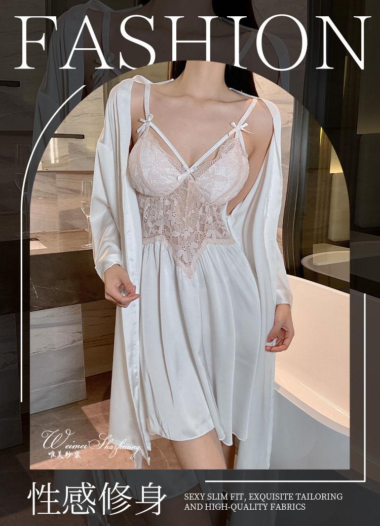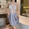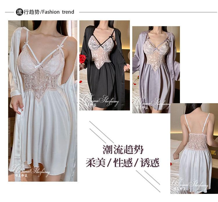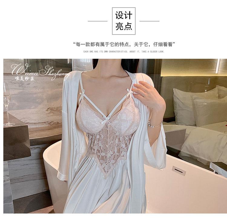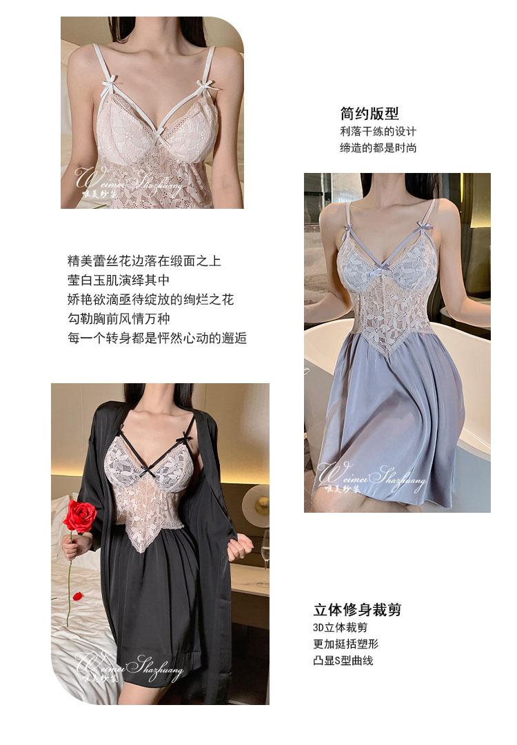 Hermoso camisón sexy de encaje con costura de satén nuevo de hilo puro deseo pijamas para el hogar con escote en V profundo sin espalda ropa para el hogar traje