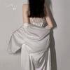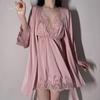 Guiruo - Pijama sexy con escote en V profundo y fino, camisón de satén con encaje y tirantes, bata exterior de encaje, conjunto de ropa para el hogar 267