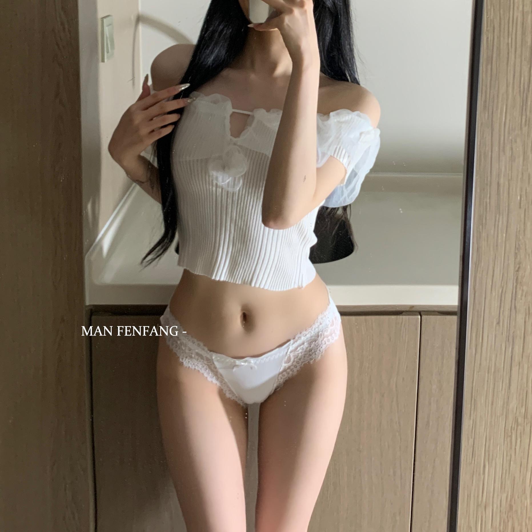 Sweet Desire Genie-Ropa Interior para Mujer Verano Sexy Encaje Puro Deseo Dividido Cintura Baja Seda de Hielo Transpirable Algodón Puro Ropa Interior para Mujer