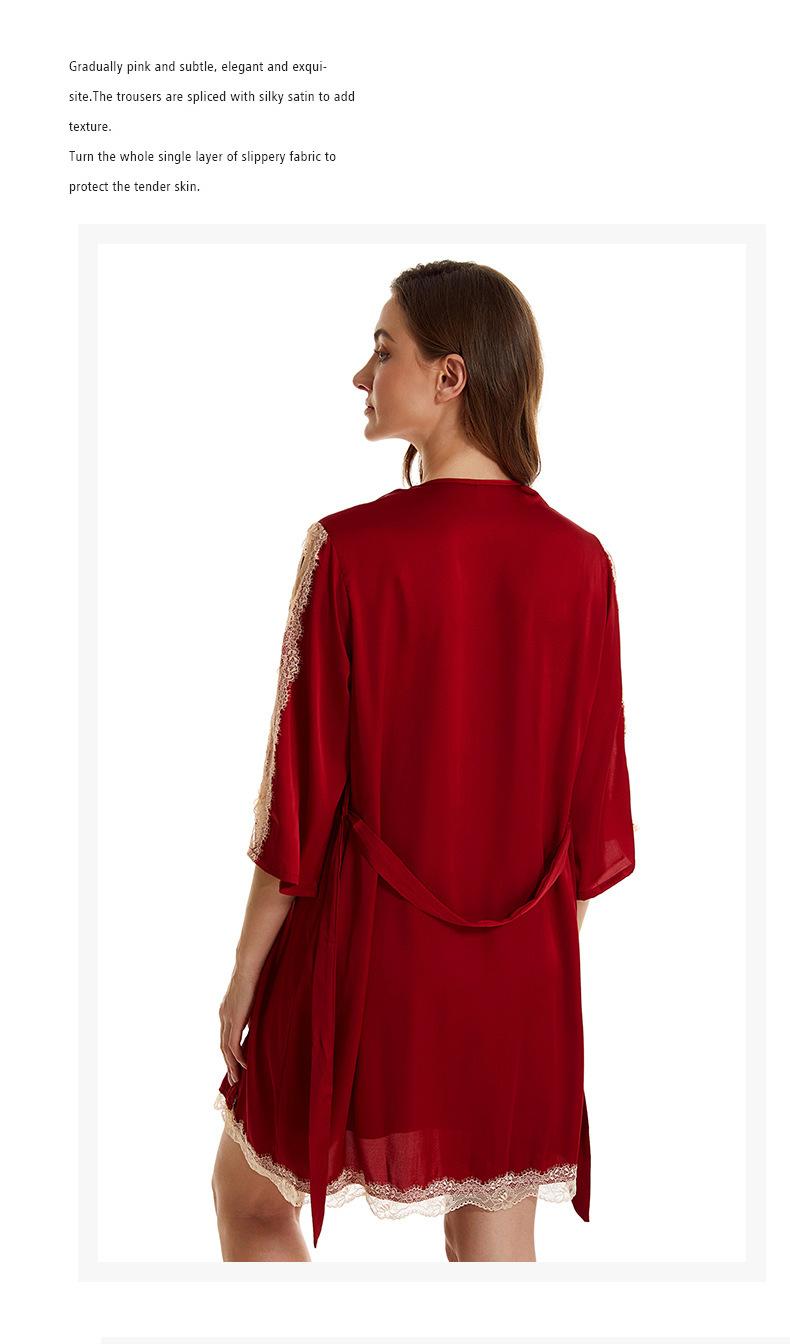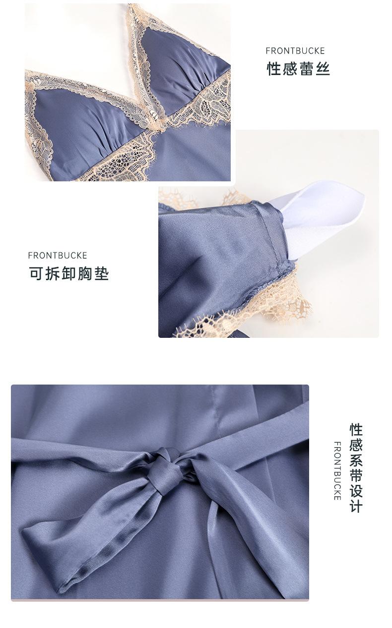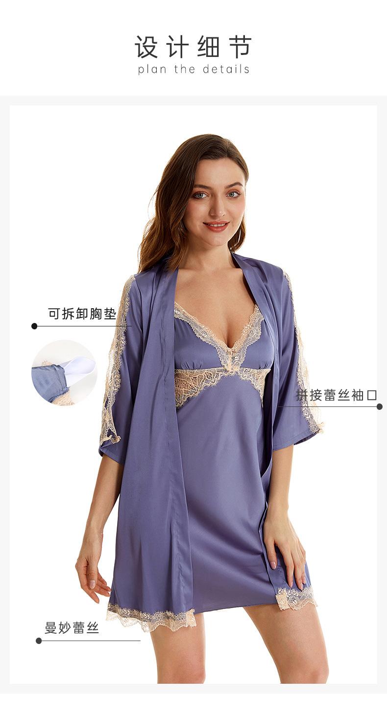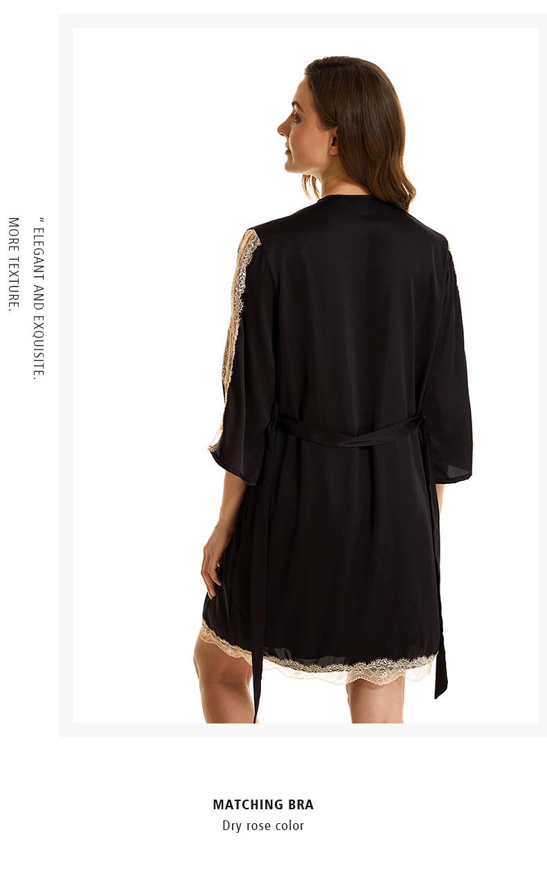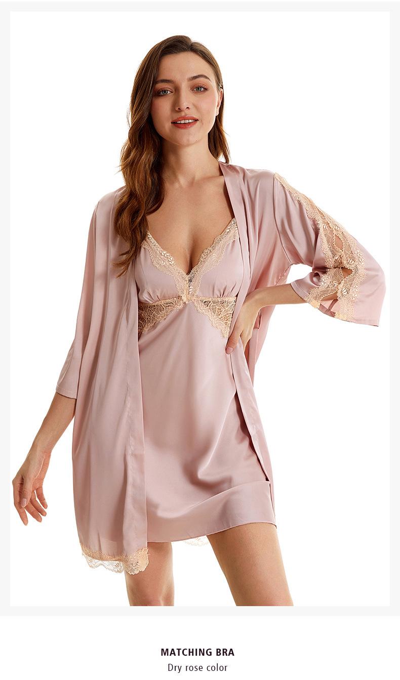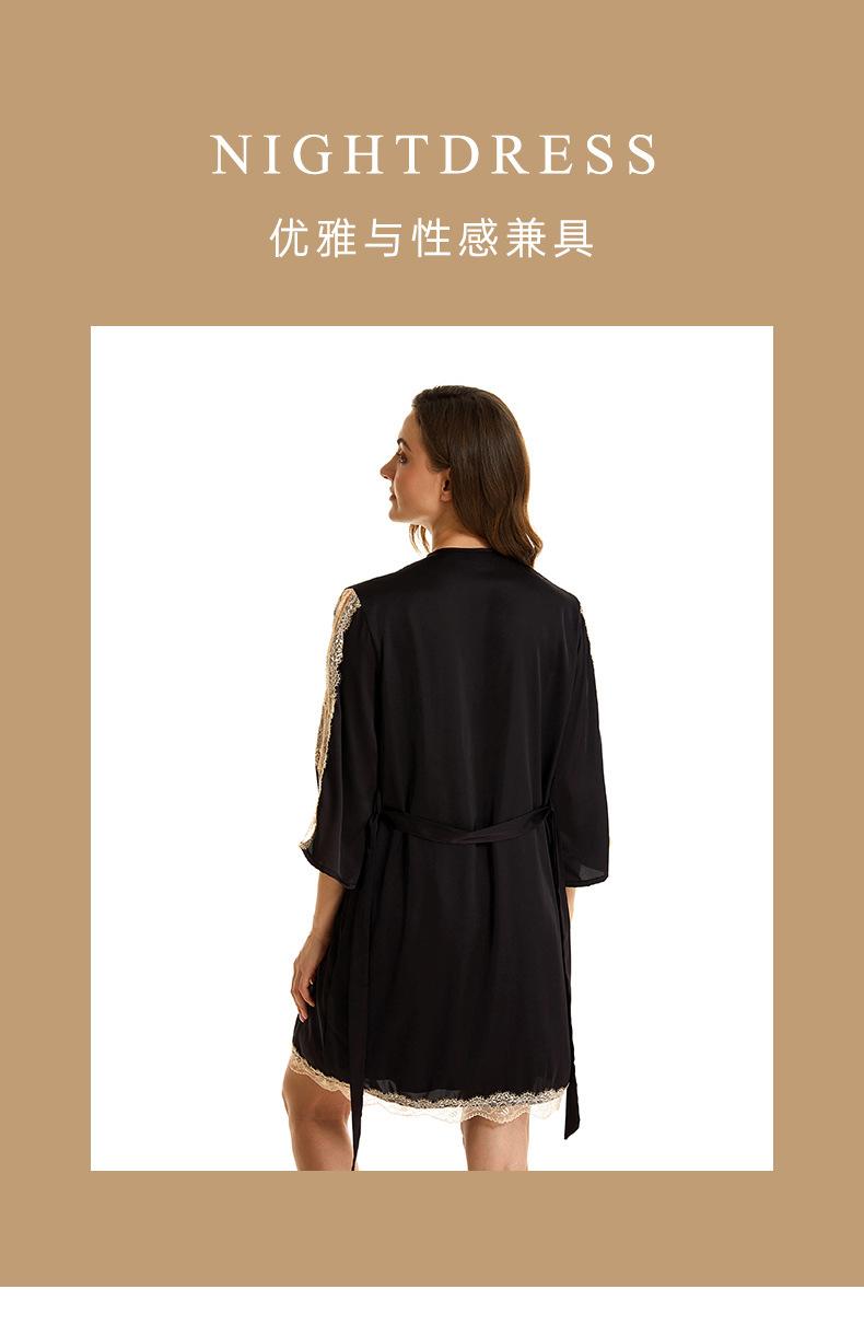 Pijama sexy de nueva tentación para mujer, camisón de seda helada, bata de baño Pure Desire, camisón de encaje de seda de siete mangas, camisón para el hogar